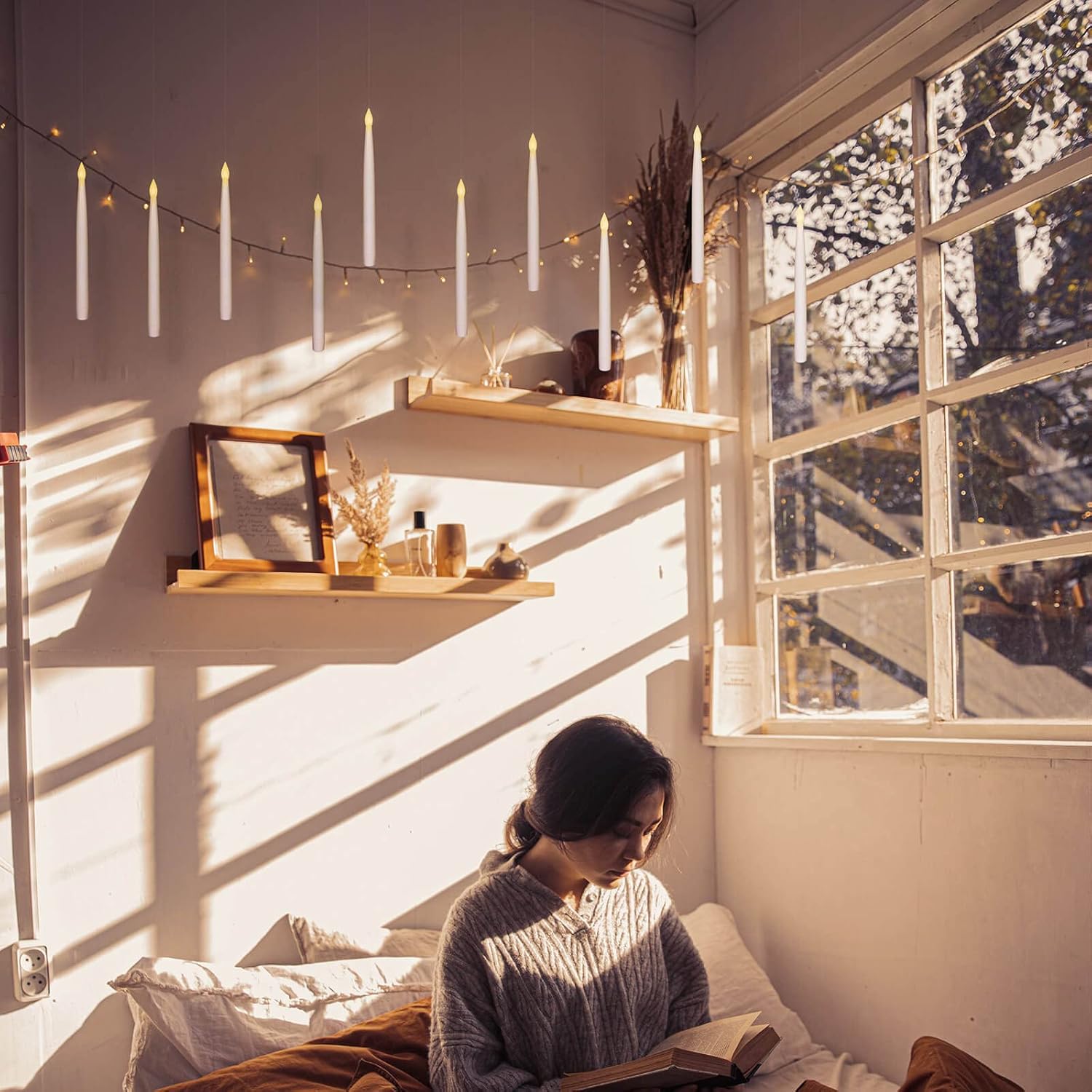 • Indoor decorations: The LED candle flickers with warm white light. You can hang these candles on the ceiling or chandelier to create "floating" candles effect for a Movie Theme party. They work great for dinner table, room, bedroom, classroom, nursery, birthday party, wedding. Also a perfect gift for Halloween Christmas and valentine's day.