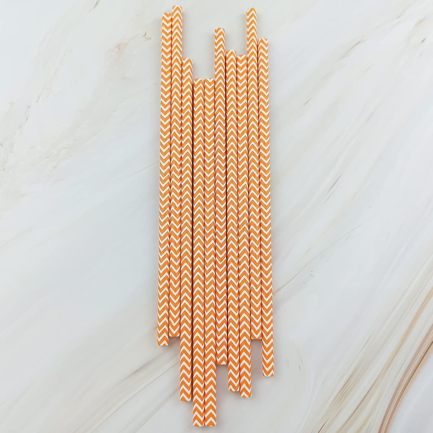 • ๐ŸŽ€Includes 100 pcs Orange Waves Striped party Paper Straws.