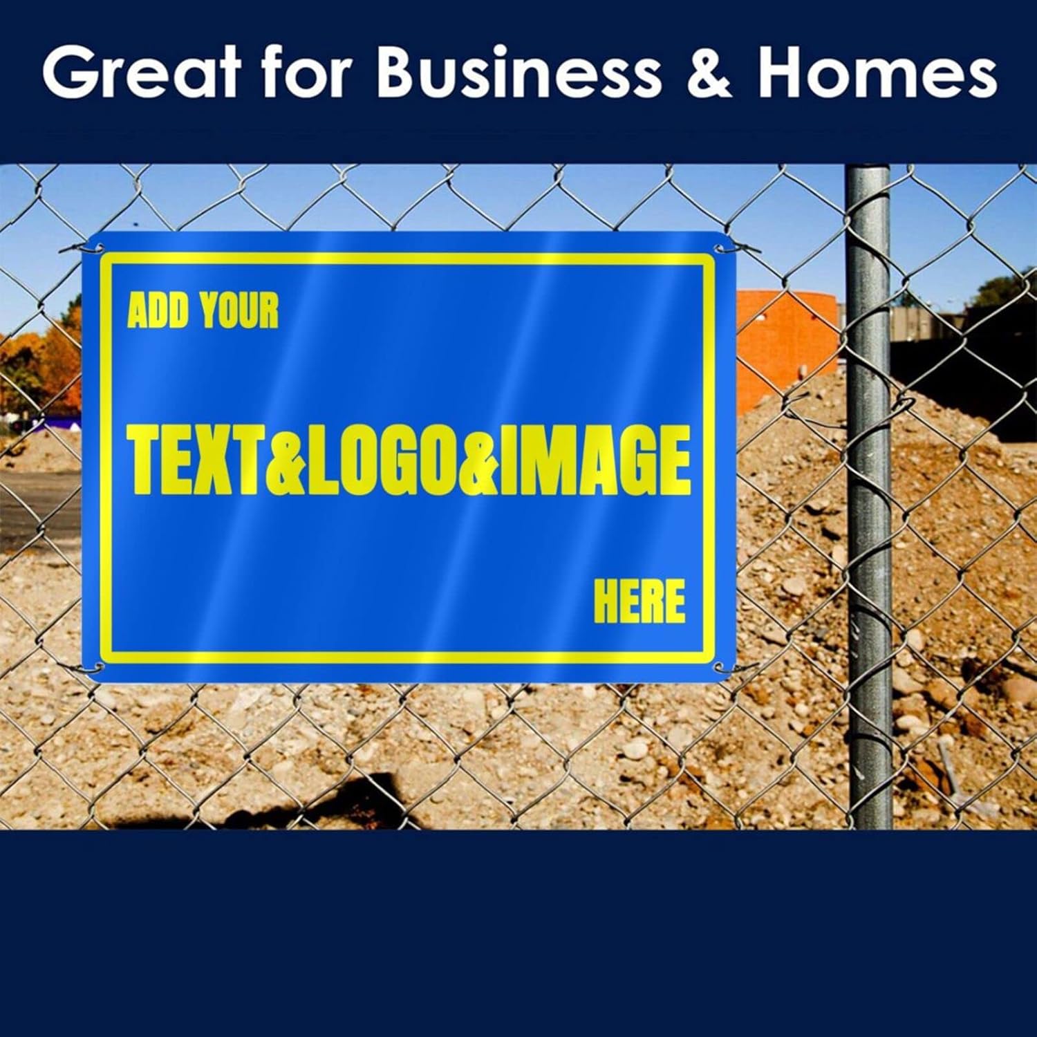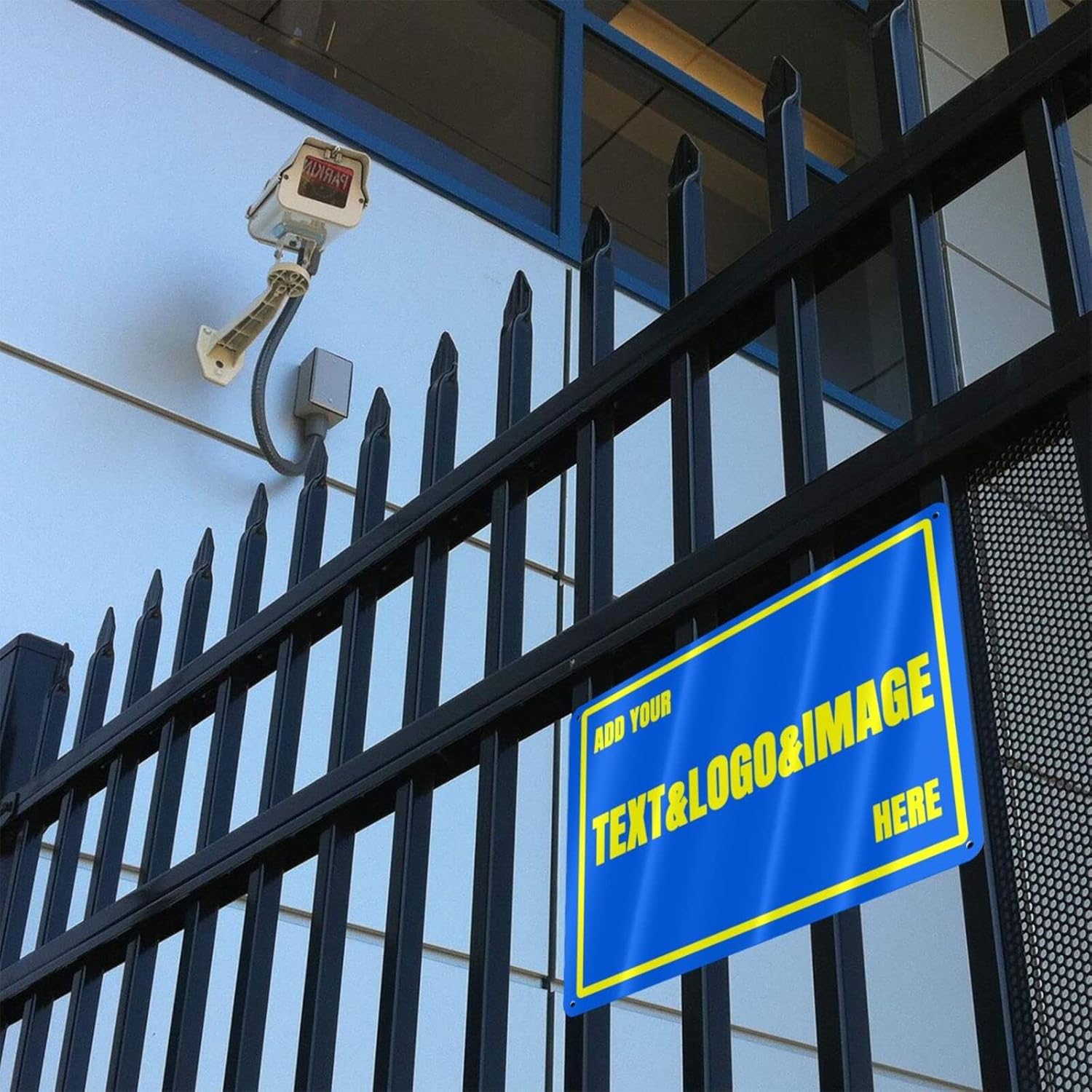 • 12 x 8 inch aluminum custom metal sign with 4 pre-drilled holes on the side that can be easily attached to any surface such as walls, doors or fences with cable ties or screws.