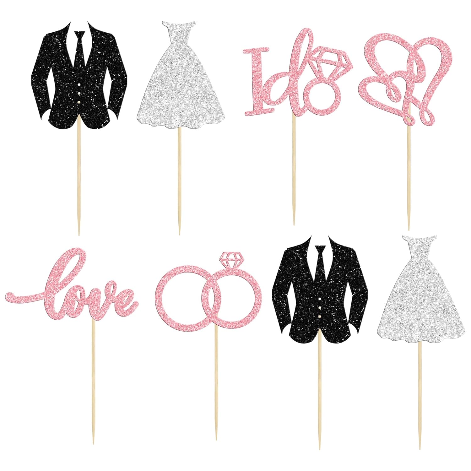 Gyufise 24Pcs Wedding Cupcake Toppers Glitter Groom and Bride Cupcake Picks Love I Do Ring Heart Cake Decorations for Bridal Shower Wedding Engagement Party Cake Decorations Supplies