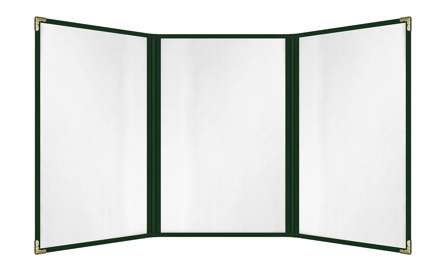 Goodsmart Restaurant Menu Covers – 25 Pack Green 6-View Trifold 8.5" x 14", Side-Loading Vinyl & Plastic Menu Holders, Clear Menu Sleeves, Leather-Style Café Covers with Gold Corners