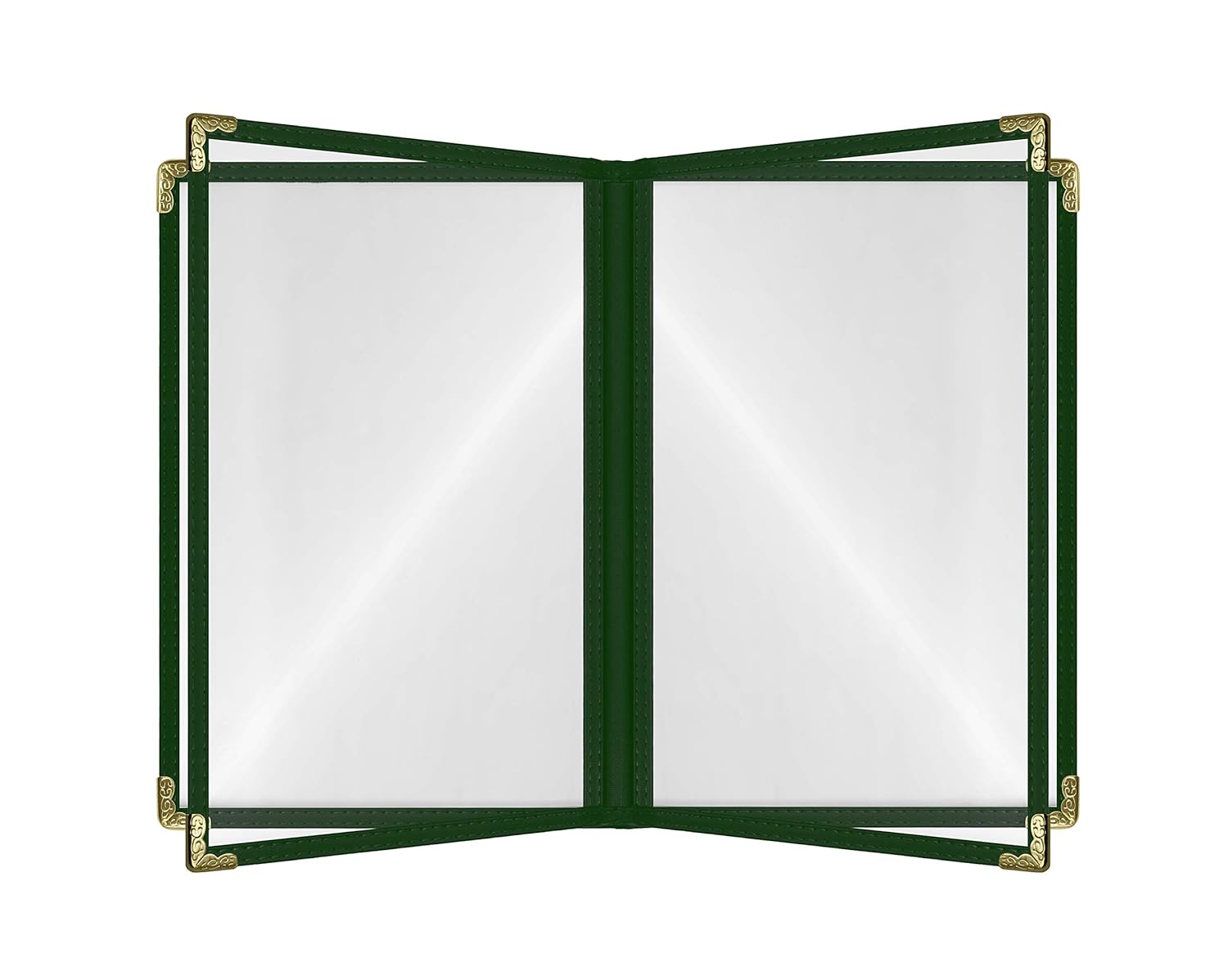 • ✅Elegant Gold Decorative Corners: Featuring gold decorative corners, these menu holders exude a polished, upscale feel, enhancing the overall appearance of your menu. The gold accents complement the green color, making your menu look more elegant and professional.