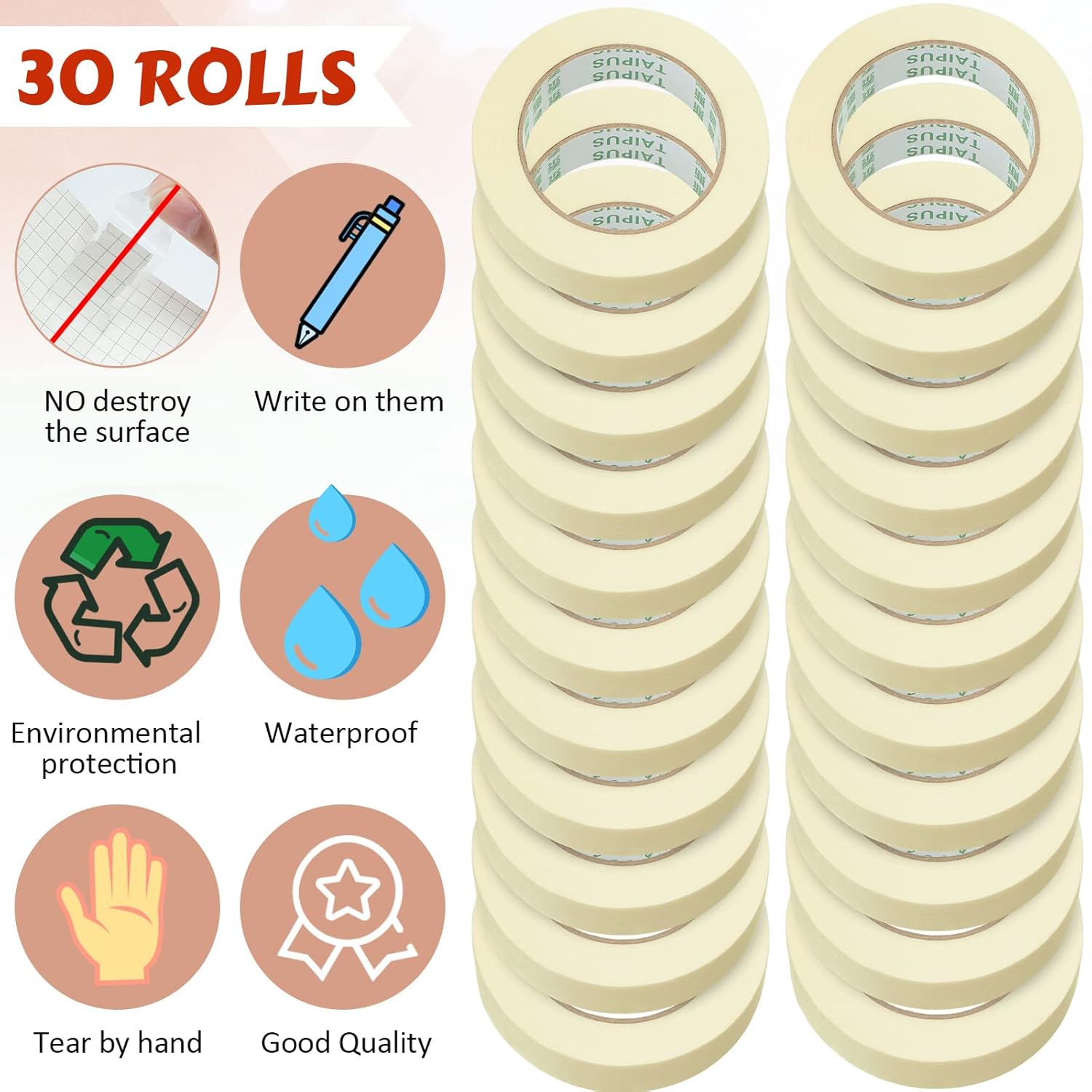 Masking Tape Bulk General Purpose Masking Painting Tape 55 Yards for Painting Home Office School Stationery Arts Crafts Basic Use, Easy Removal(30 Rolls,1 Inch)