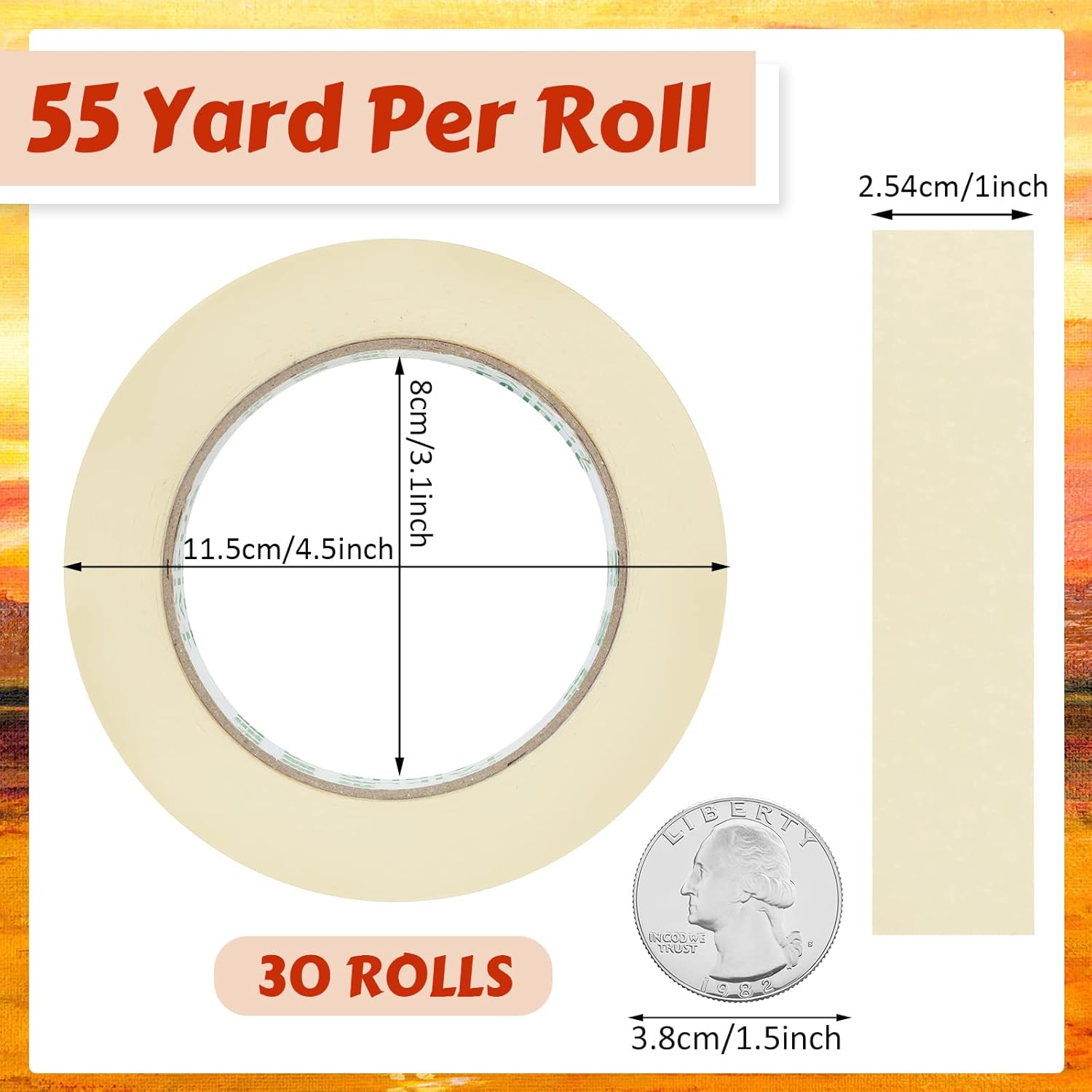 • Sufficient Quantity: the package contains 30 rolls of masking tapes, and each roll is approx. 1 inch x 55 yards, adequate quantity and enough length to meet your various needs in daily life, bringing more convenience to you
