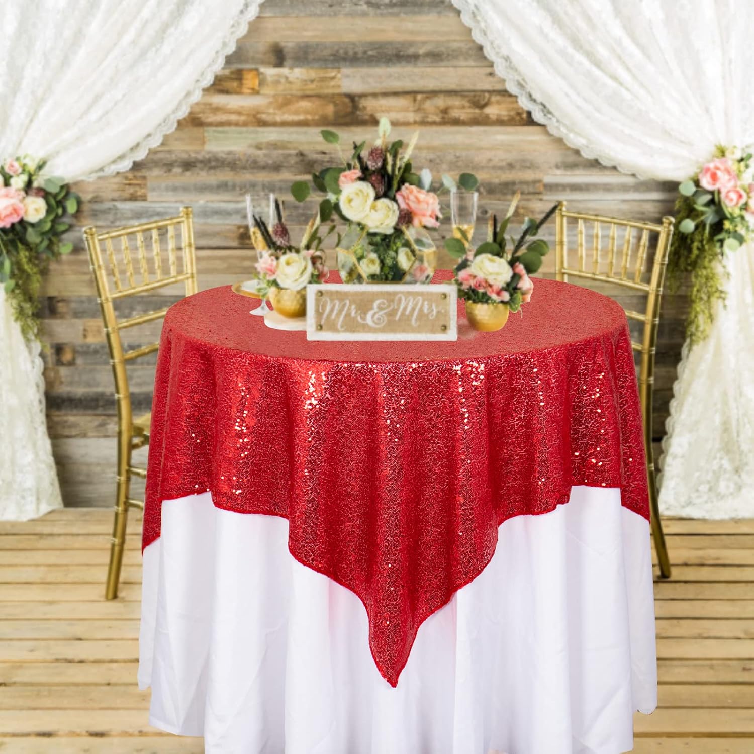 • ❀ SIZE OF SEQUIN TABLECLOTH : Red sequin tablecloth 1pc 36x36 Inch Sequin Tablecloth Table Linen, this small square tablecloth is fit for small round tables under 36''