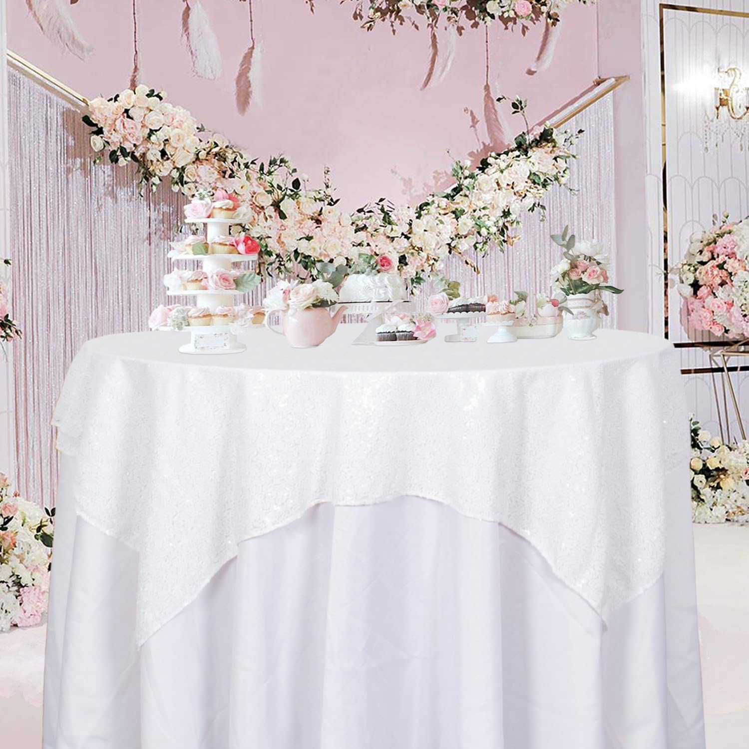 • ❀ WHAT YOU GET : Tablecloth white 1pc 54x54-Inch square sequin table cloth, this glitter table overlay is fit for a round/square table under 4FT