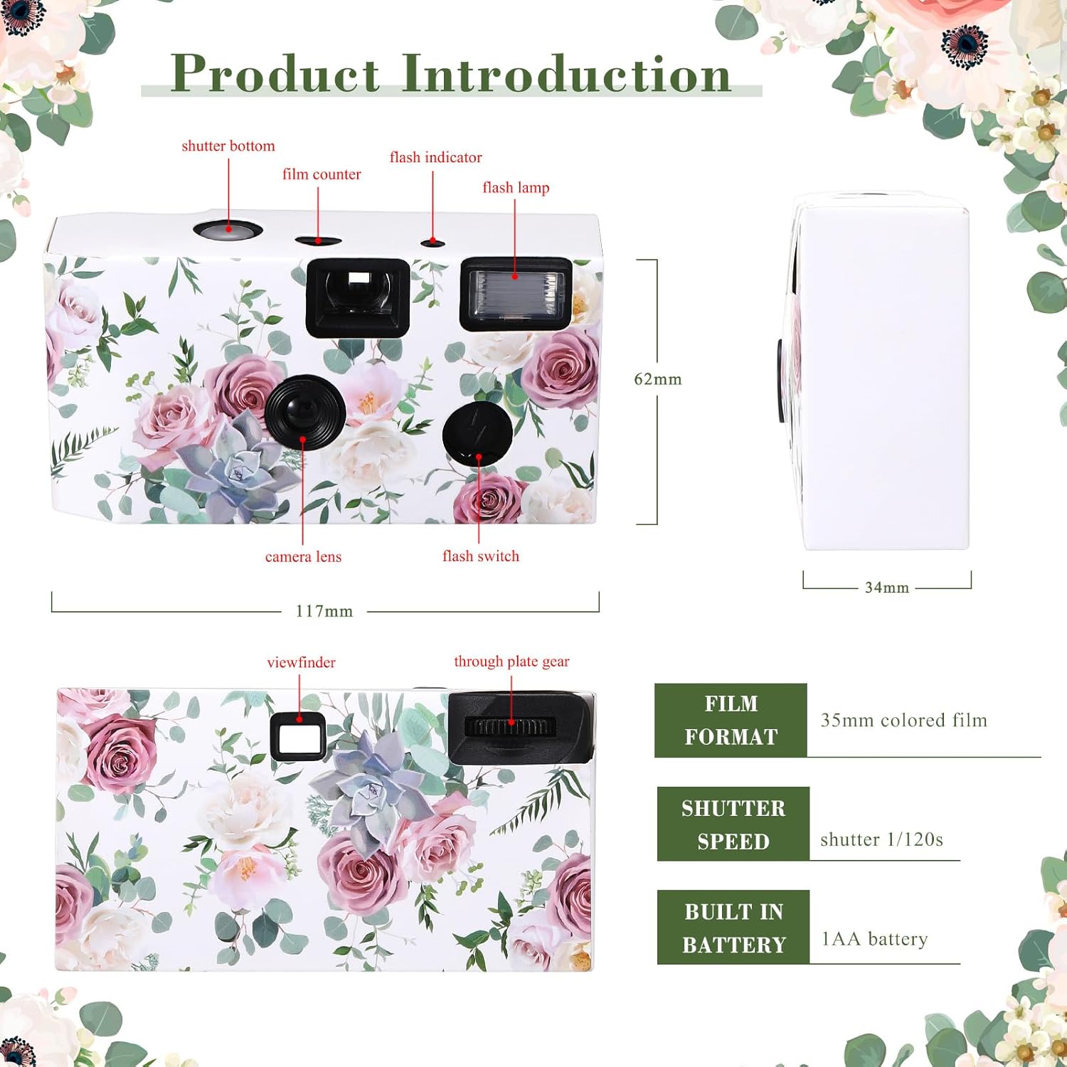 • Exquisite and Novelty: the throw away camera for wedding is designed with rose patterns, looks romantic and delicate, and a classic camera style makes them more retro and modern, suitable for you to use at anniversaries or wedding parties, adding a warm atmosphere to the parties and making you stand out from the crowd when using this camera
