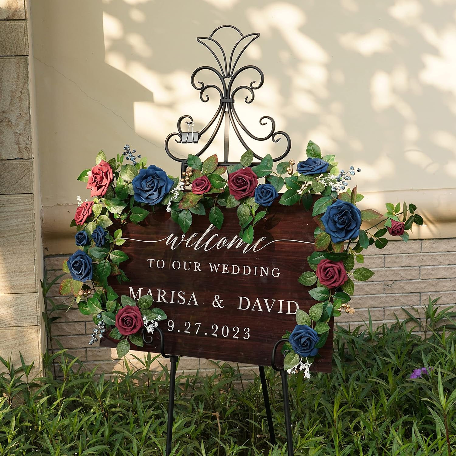 PONATIA 5FT Handcrafted Artificial Rose Flower Garland, Burgundy Flower Garland for Wedding Ceremony Garlands Backdrop Arch Flowers, Ceremony Reception Table Decorations (Burgundy & Navy)