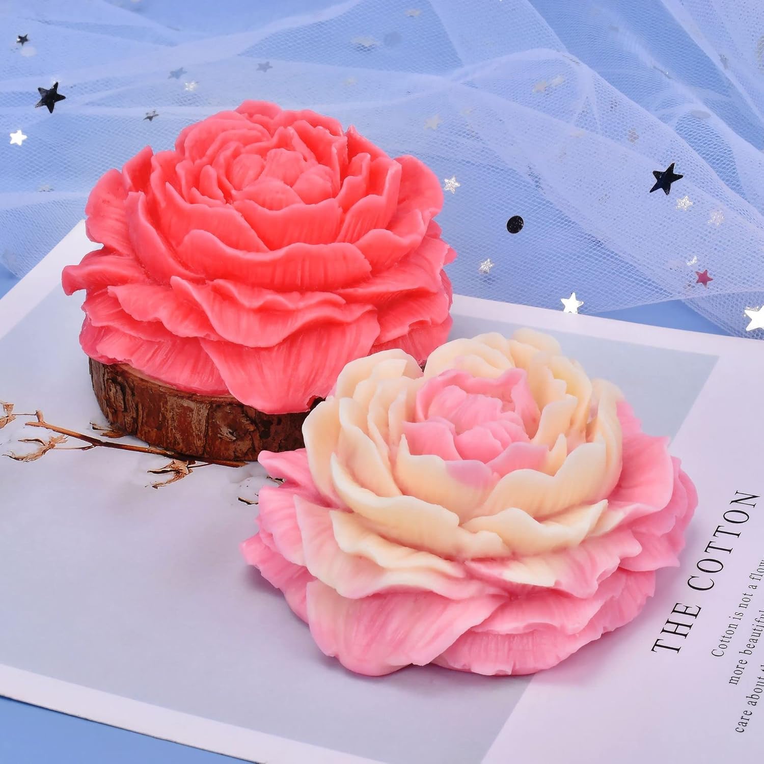 2 Pack Peony Flower Soap & Candle Mold - Silicone 3D Molds for Candy & Home Decor - Resin Casting & Making Molds
