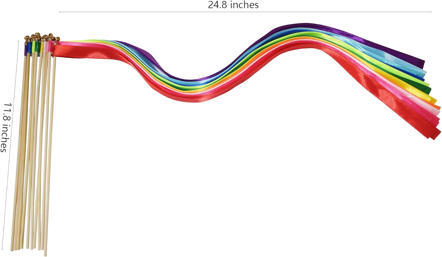 • ๐ŸŒˆAll ribbon streamers are well crafted with smooth wooden stick handles, all ribbons and bells are securely attached to prevent them from slipping off when waved around. Ends of ribbons are heat sealed to prevent the ends from unraveling.