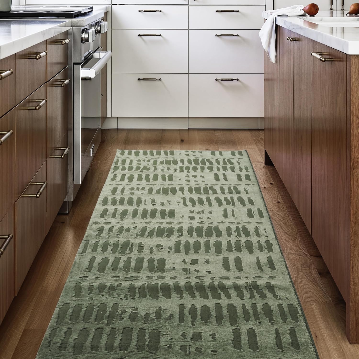 Revival Rugs Shell 2'7"x9' Machine Washable Runner Rug for Hallway Entryway - 100% Recycled Oeko-TEX Certified, Medium Pile, Green