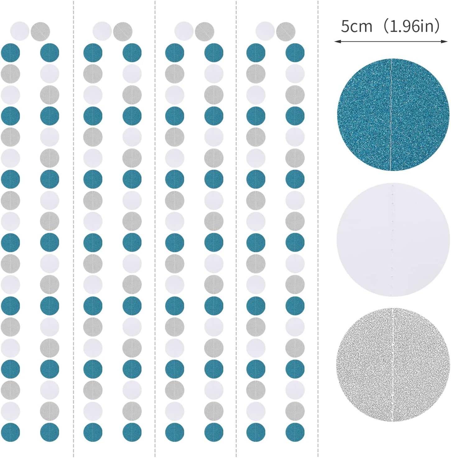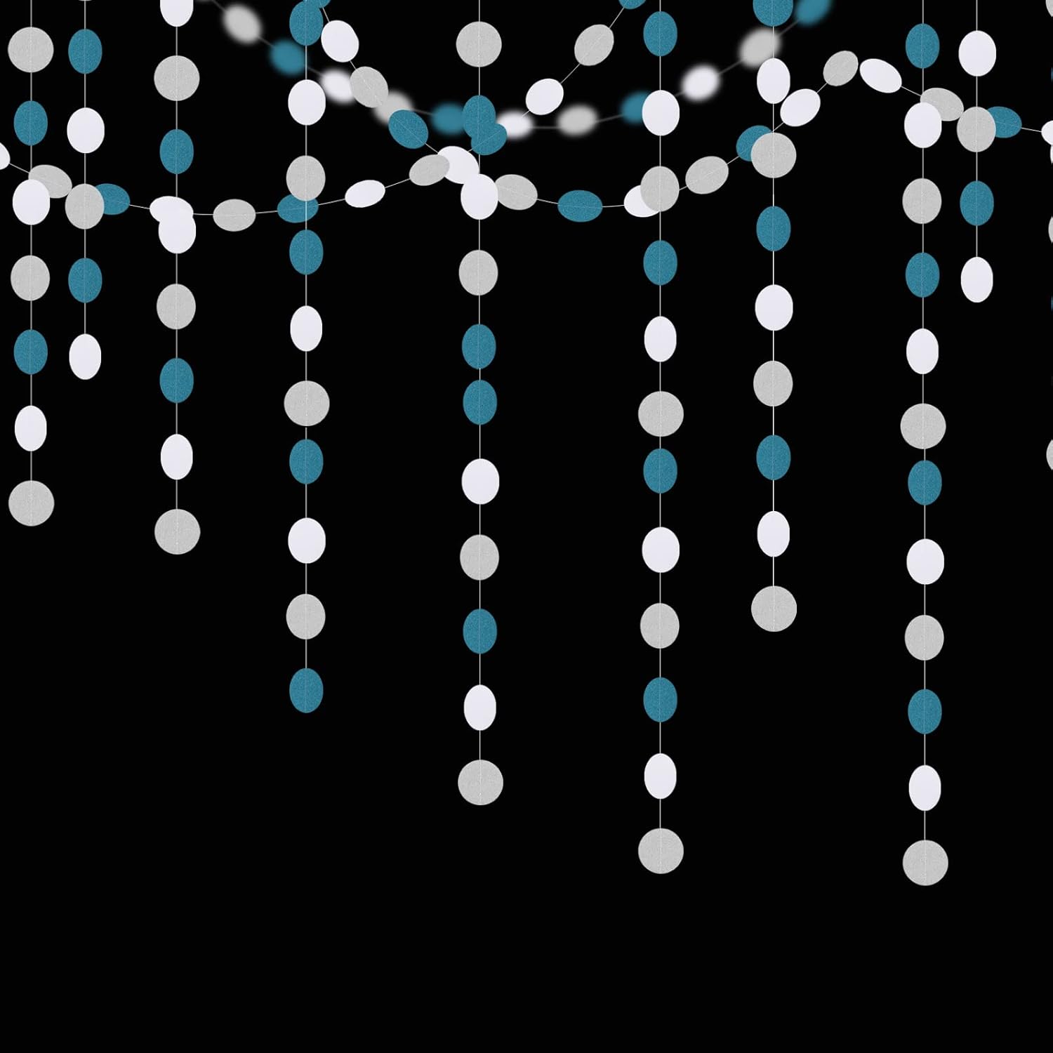 • 【Material】The material is eco-friendly teal white silver paper.You can cut to any length you want if you need shorter length.The circles are cut very neatly.