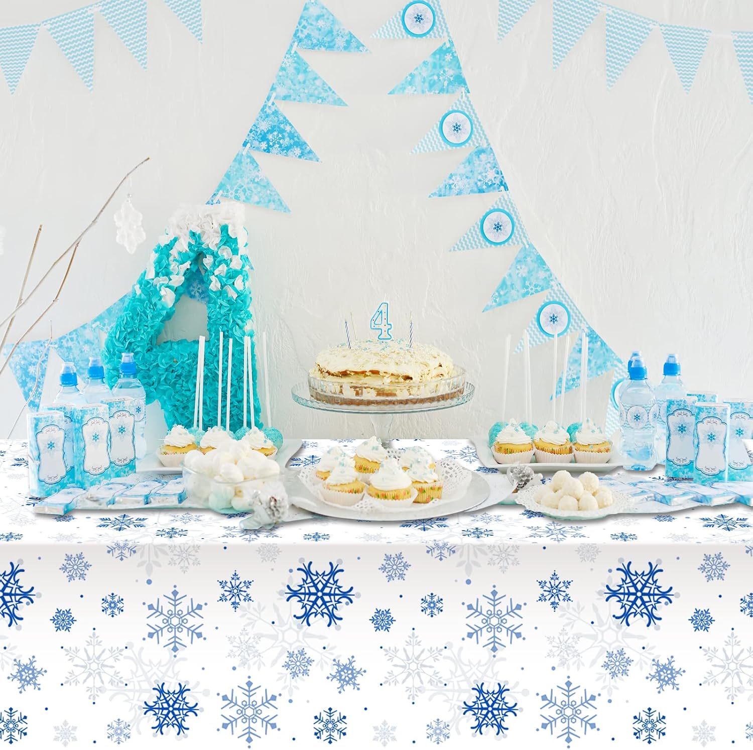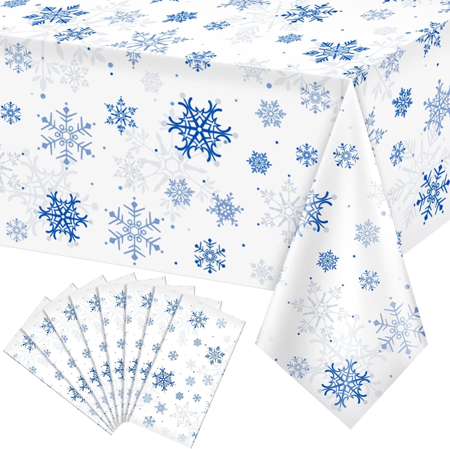• What will you receive:8 pieces rectangular christmas party tablecloth,all over printed with ice blue snowflake patterns on white backdrop,ideal for decorating your winter holiday and Christmas party supplies and decorations