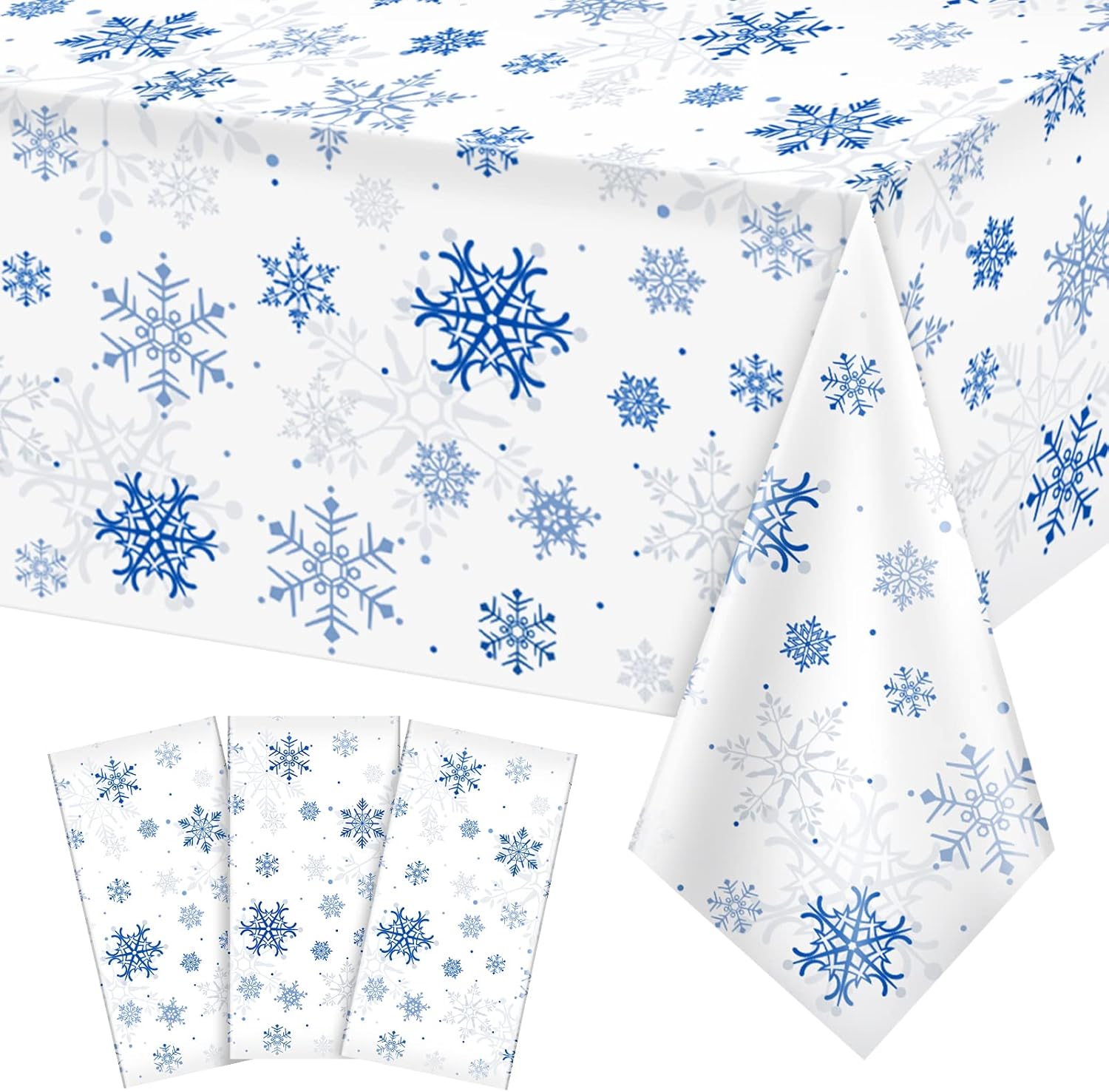 • What will you receive:3 pieces rectangular christmas party tablecloth,all over printed with ice blue snowflake patterns on white backdrop,ideal for decorating your winter holiday and Christmas party supplies and decorations