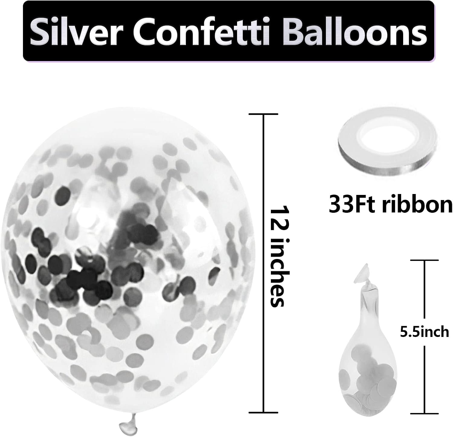 • 【Silver Confetti Balloons】- Each sets contains 60pcs silver confetti balloons of 12 inches and 1pcs silver ribbon (33 feet total).The right amount quantity and most suitable color for each party decoration.