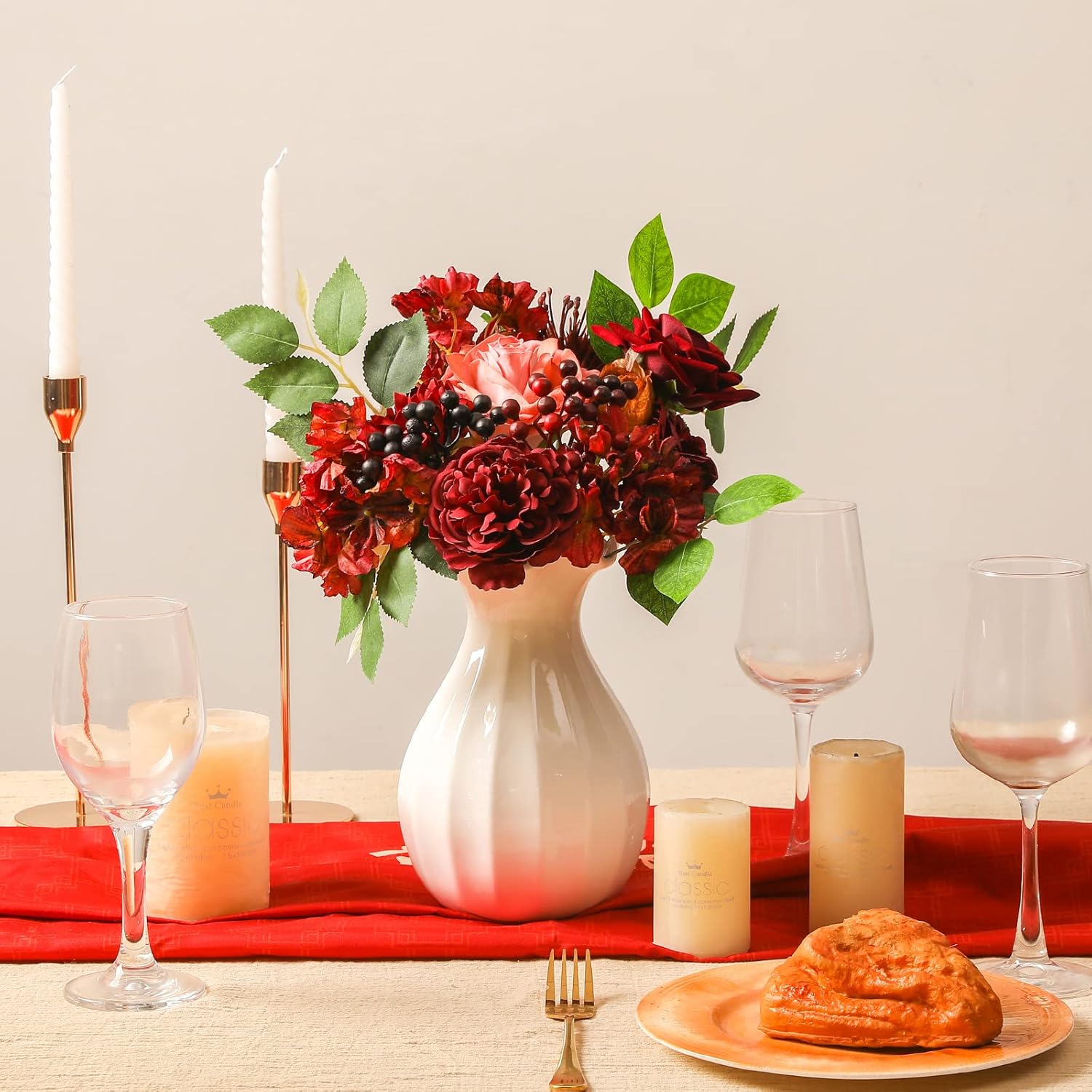 • GREAT VALUE COMBO PACK:Our artificial burgundy flowers combo never wilt. This is a combo pack of different styles of flowers and plastic greenery leavesThey look not only beautiful but very lifelike, perfect for creating romantic and warm atmosphere.