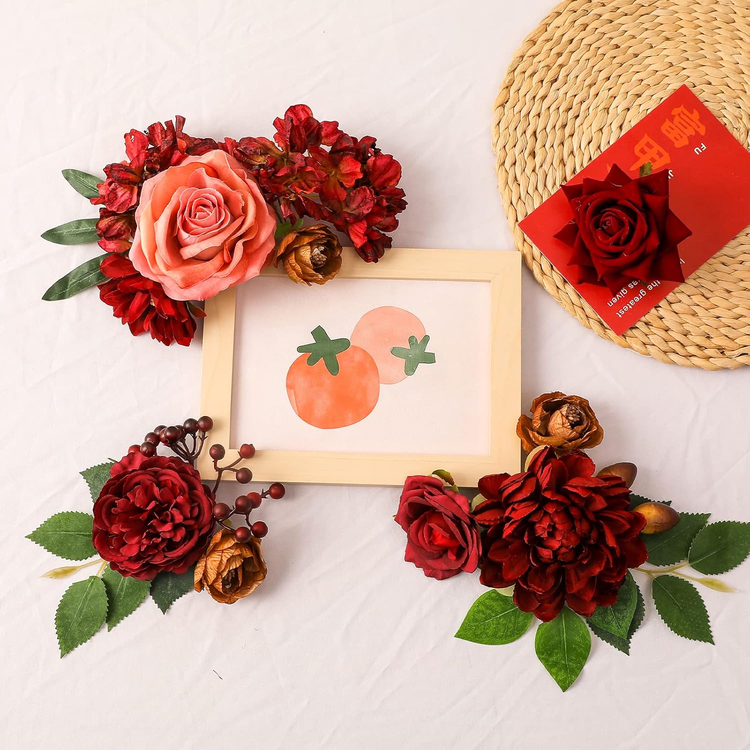 Artificial Flowers Combo Box Set Burgundy Silk Flowers for DIY Wedding Bouquet Arrangements Bridal Shower Party Home Decorations (Mature Burgundy)