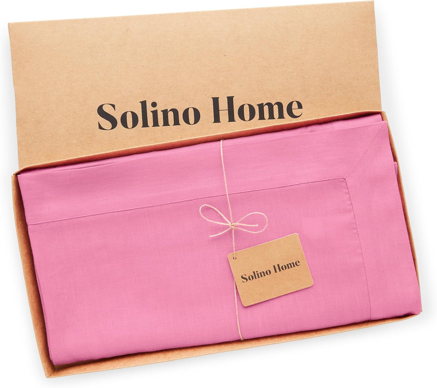 Solino Home Linen Tablecloth for Rectangle Tables 60 x 90 Inch - 100% Pure Linen Flamingo Pink Table Cloth - Fete, Machine Washable Cloth Tablecloth for Halloween