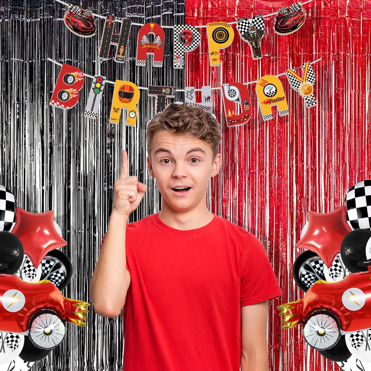 Foil Fringe Curtain Party Decorations - Black Red Metallic Tinsel Backdrop Party Steamers Curtains for Birthdays Halloweens Christmas Theme Prom Holidays Parties Decorations