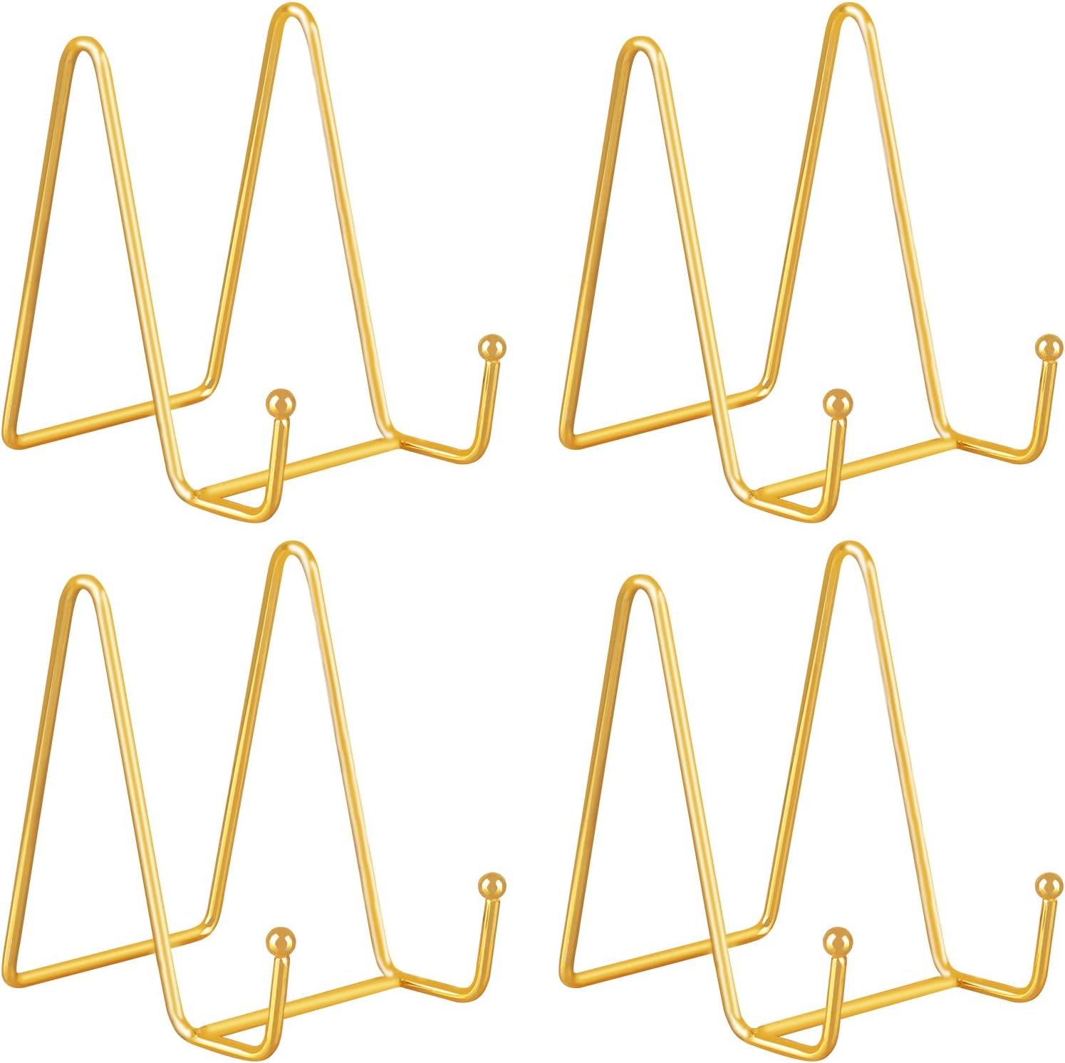 Decolore 4 Pack 4 Inch Display Stands Gold Plate Stands Metal Frame Holder Stand for Picture, Decorative Plate, Photo Easel, Artistic Work Display Stand, Picture Frames