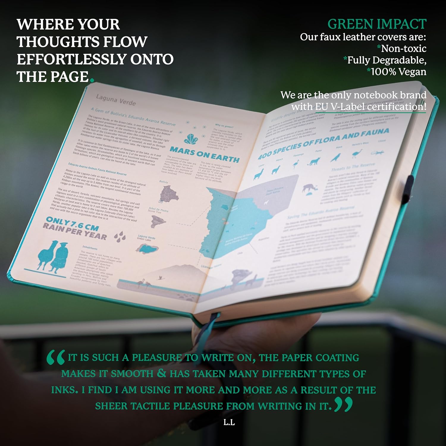 • THE ONLY VEGAN CERTIFIED NOTEBOOK: Stay eco-conscious with our 100% vegan certified notebook, crafted from recyclable materials and featuring purely FSC certified paper - perfect for anyone looking to make a positive impact on the environment while staying organized