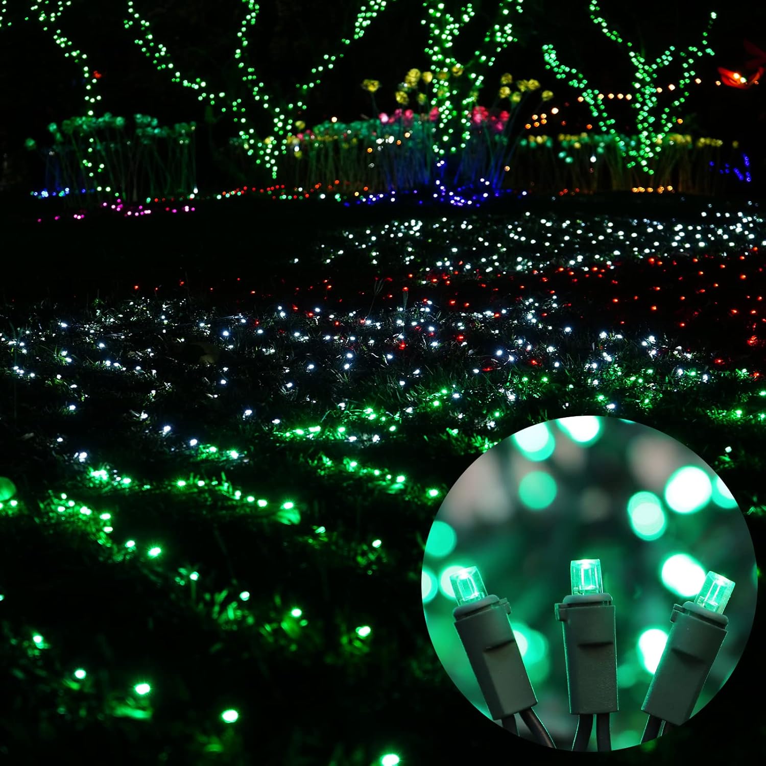 • Safe to use: Just plug or unplug to turn the light on or off. There is a fuse inside the plug to protect the lamp from burning out. UL588 safety certification, you can rest assured to use, very safe.The little bulbs in green wire color create a 360-degree flash that's super bright and festive, brightening up your holiday with warm sunlight and enough brightness.