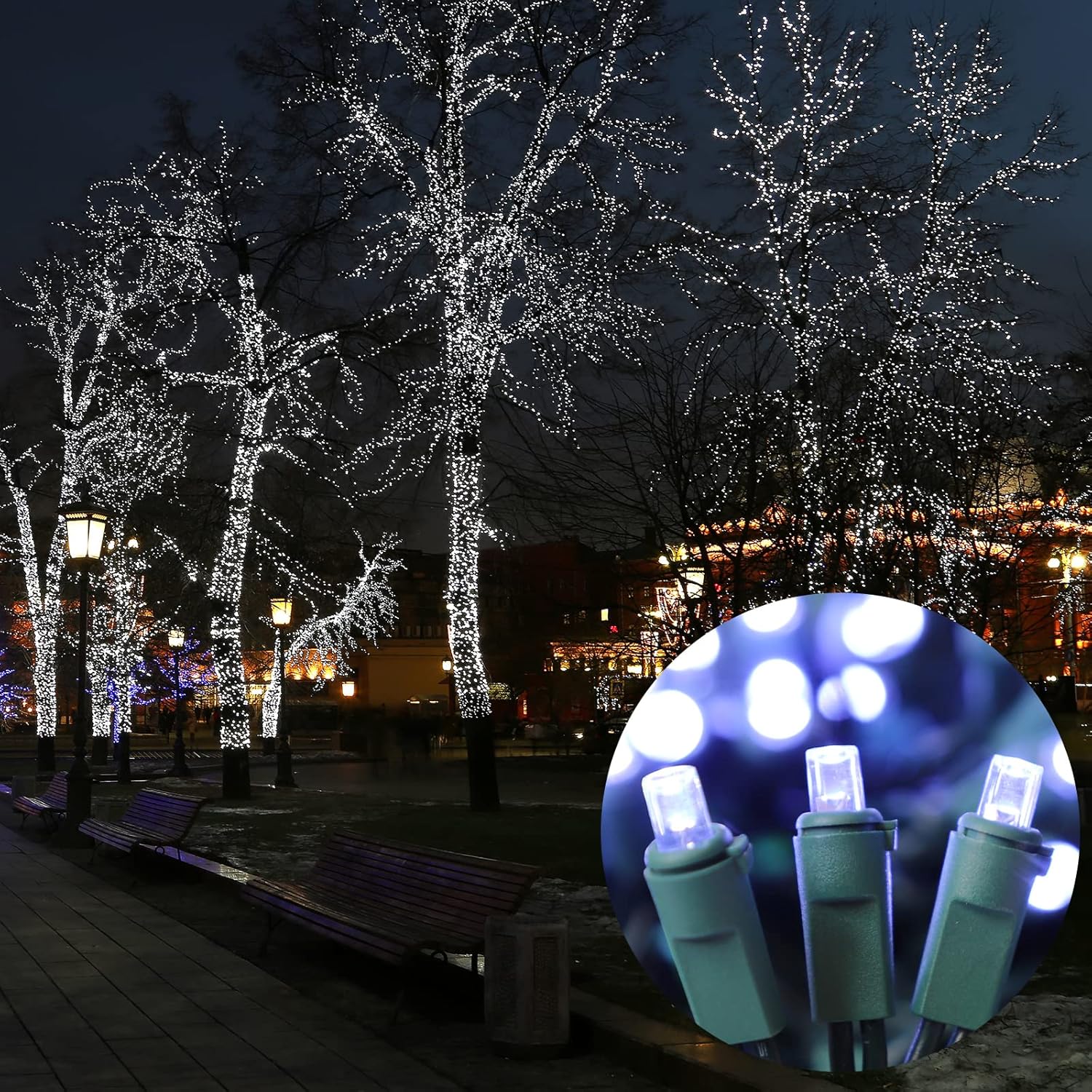 • High quality: Commercial grade 22 gauge wire with a pure copper core, wrapped in rubber that is infused with fire resistant materials, for longer runs and extended life. These 5mm feature a concave lens design that disperses uniform light in all directions for amazing color. You never have to worry about the string lights being buried in the bush.