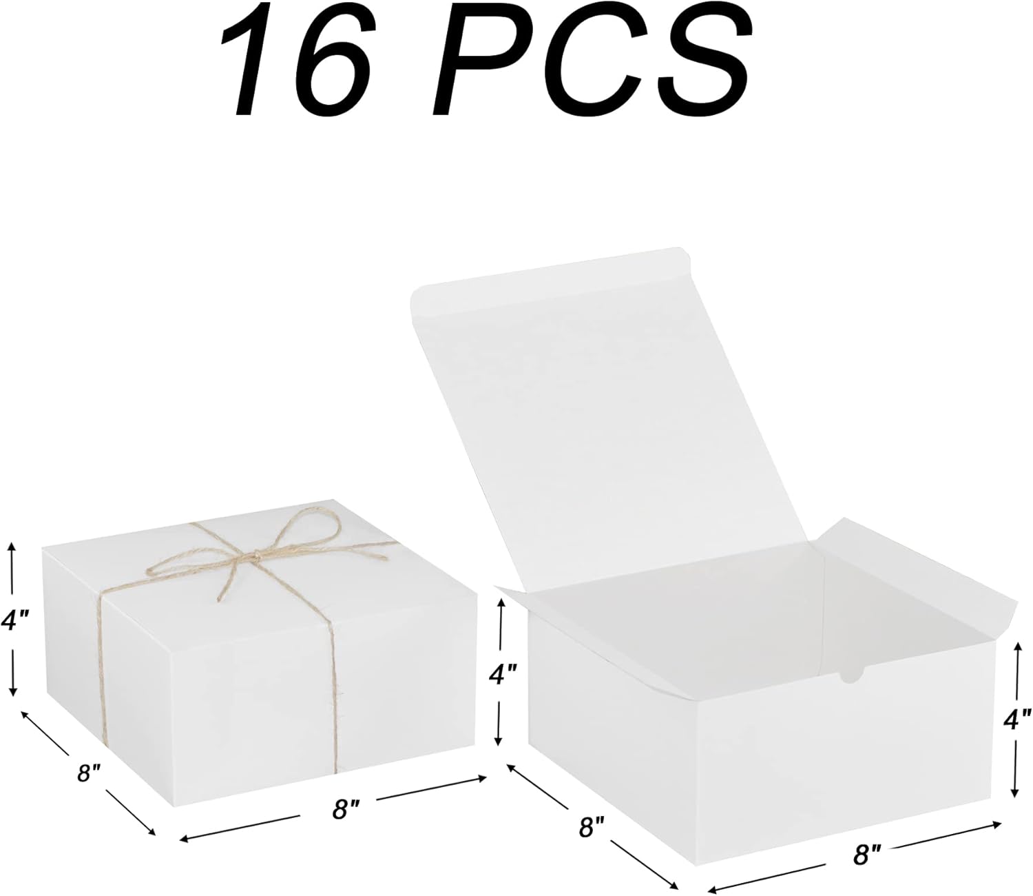 Xxcxpark 16 PCS White Gift Boxes 8x8x4 Inches, Decorative Party Favor Kraft Paper Gift Packaging Box with Lid for DIY Crafting, Cube, Cupcake, Kraft Present Boxes for Birthday, Wedding