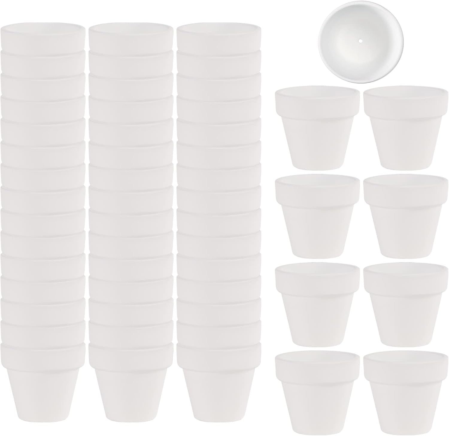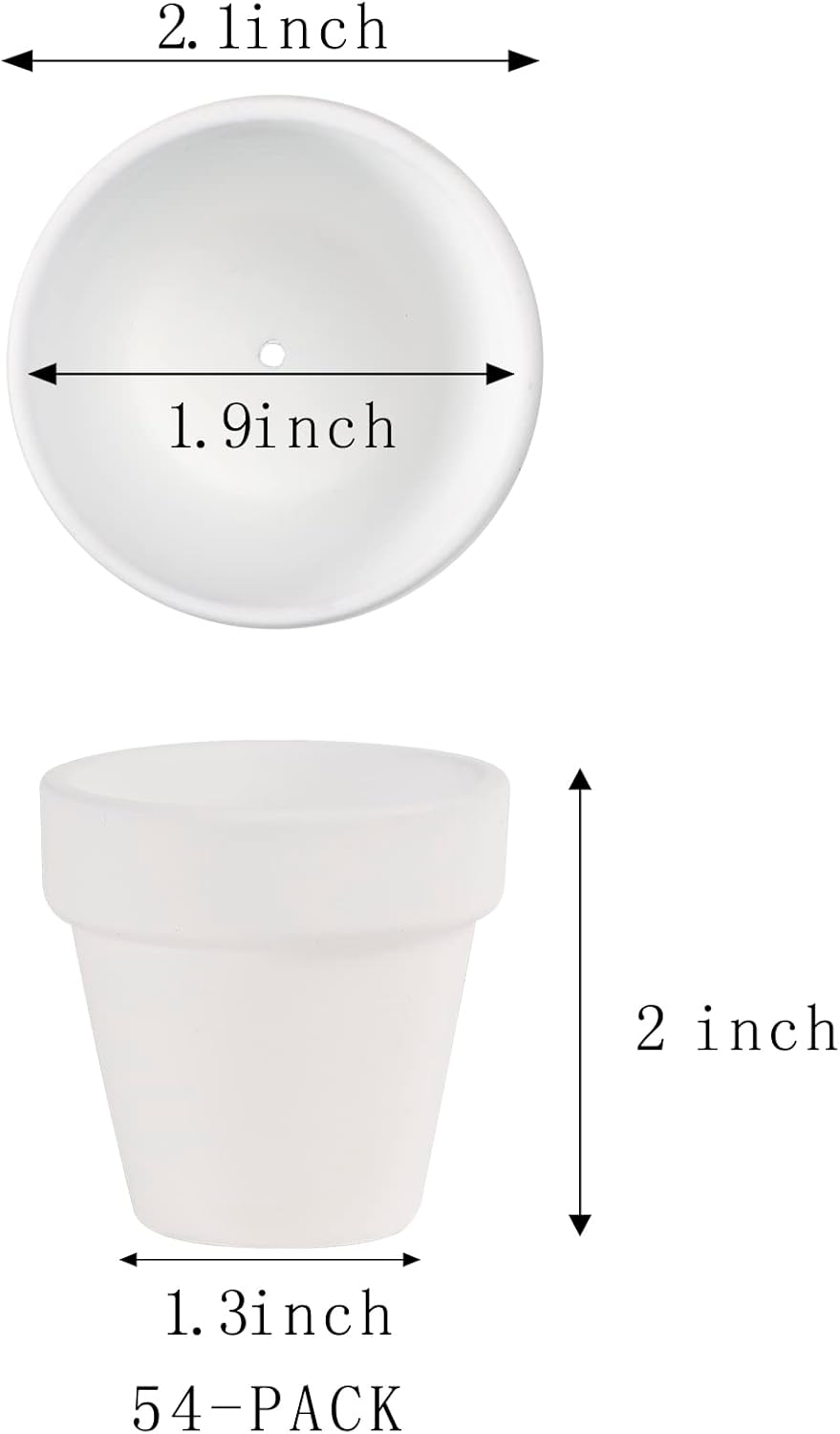 • Mini and Lovely: The tiny white clay pots for plants, 2" in height, 2.1" in outer diameter, are designed for holding small succulent, cactus and herbs. There are 54 pcs white pots in the package, plants and soil are not included.