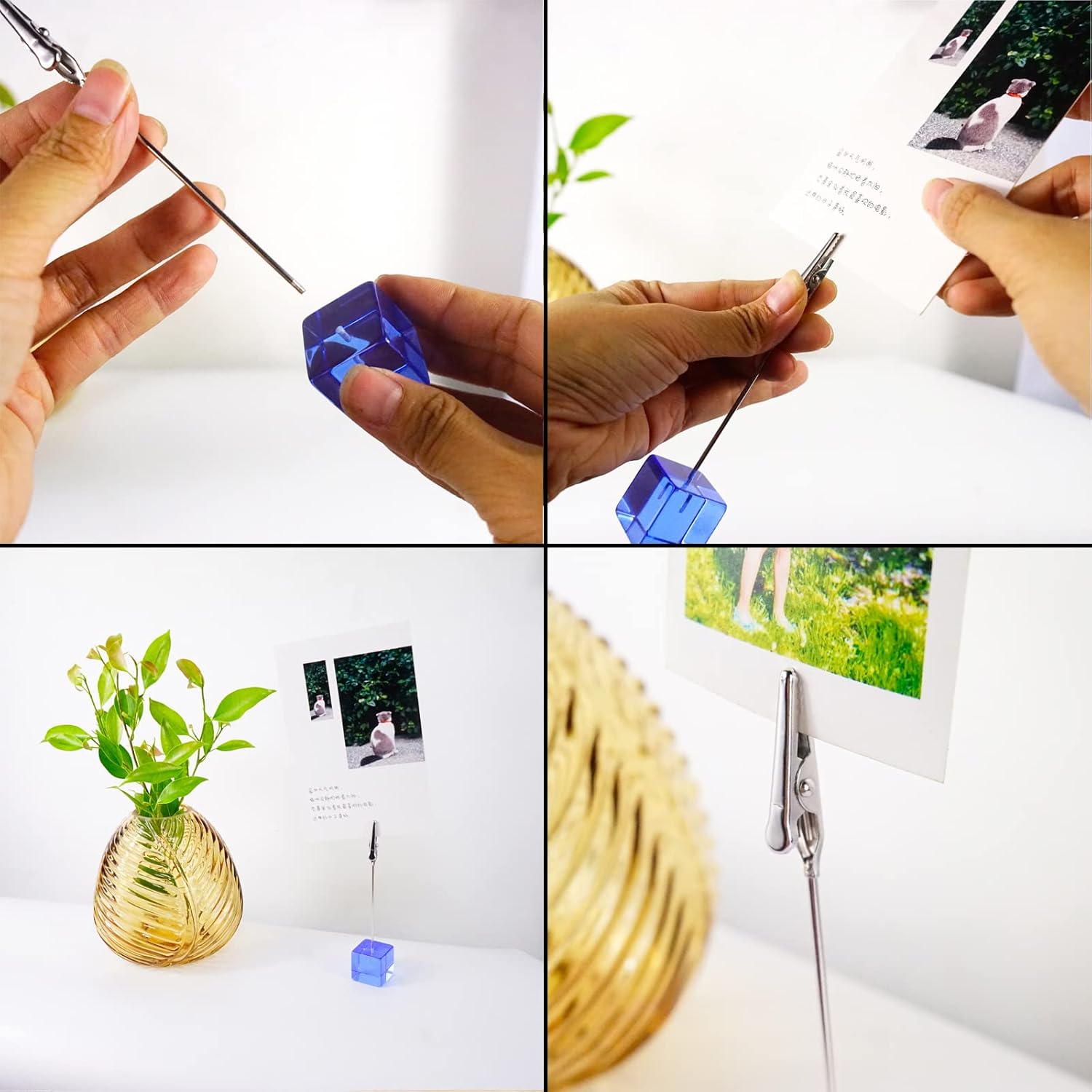 • β˜…Unique Decor: The photo clip holders comes with 10 rainbow-colors colors cube bases. The high clear bases will create the most beautiful refraction when the sunlight or any other kind of lights hits them