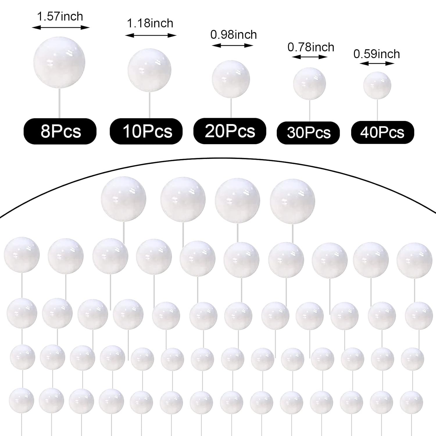 108 Pcs Balls Cake Topper DIY Cupcake Insert Foam Balloons for Cake Baking Wedding Anniversary Birthday Decoration(White,Multi Sizes)