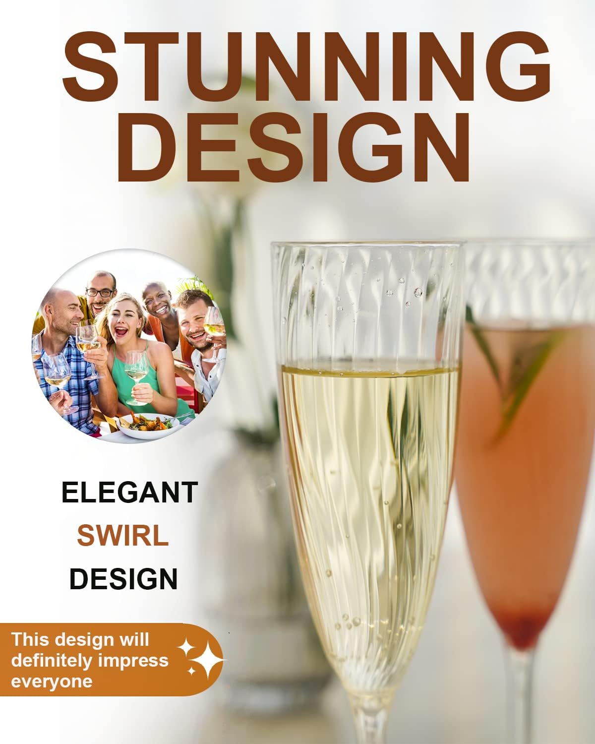 • 🍸Suitable size🍸 This elegant flute has a capacity of 6 oz. Its unique shape design makes the moment you raise a glass with your friends a surprise moment. It is an ideal choice for champagne toasting at any party. They provide turn any activity into an unforgettable moment.