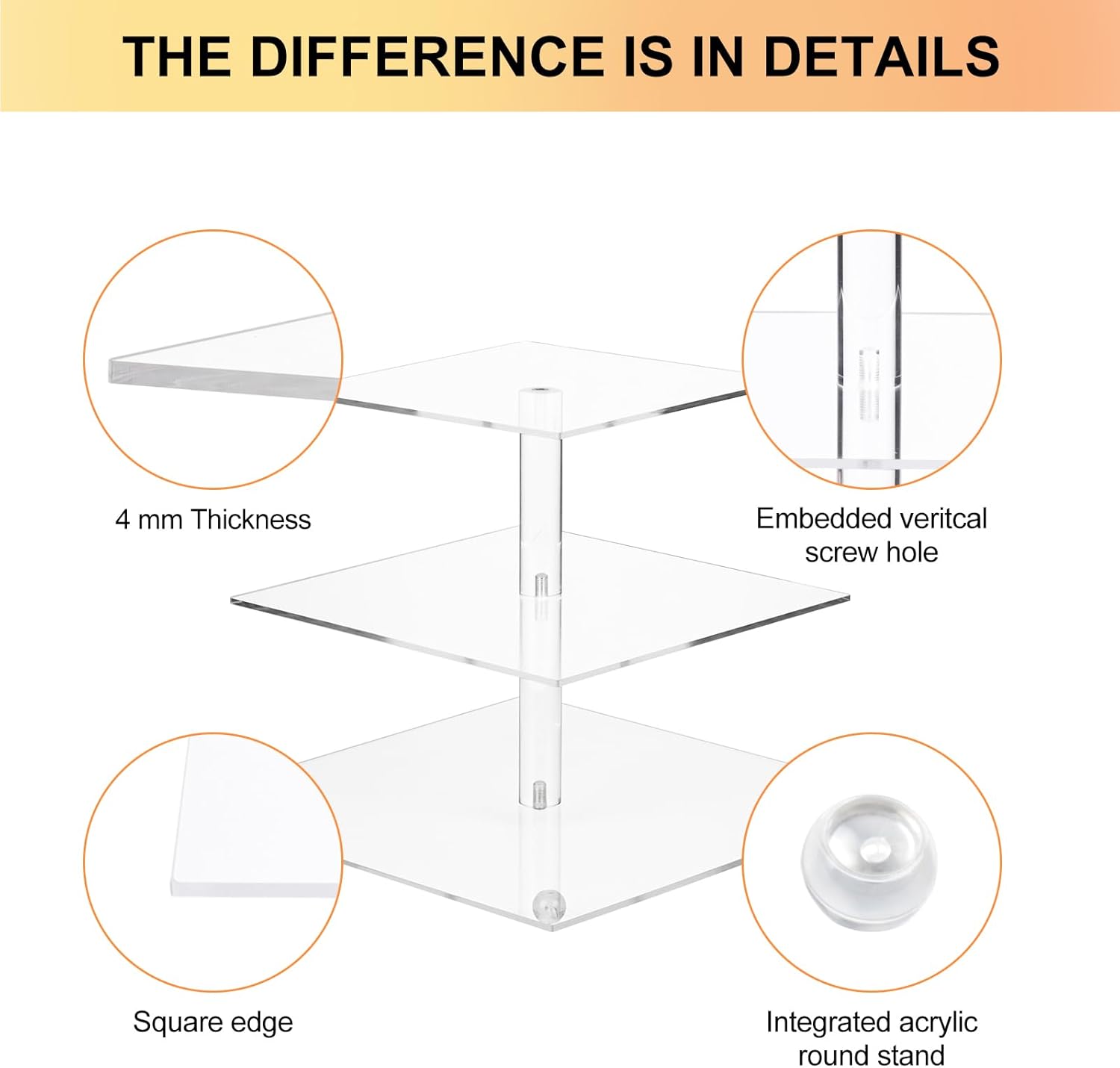 • โ™›[Premium Design]--- The high transparent acrylic cupcake stand can better highlight your events and perfectly fit different style engagement such as wedding, birthday, party, baby shower, Thanksgiving, Christmas, New Year and etc. Made of 4 mm thick acrylic panel and the edges of the panel are perfectly polished and clear to avoid scratching your hands.