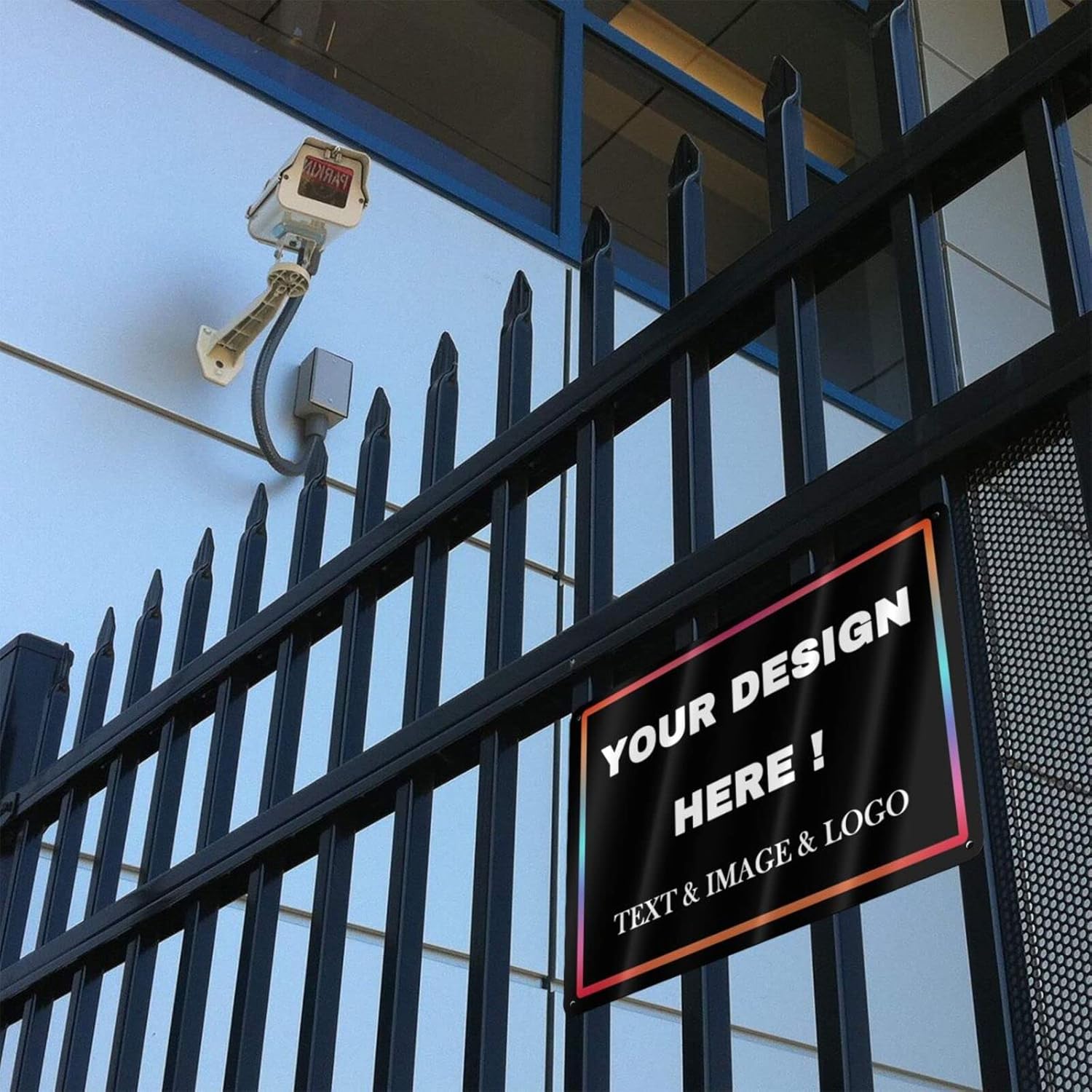 • 12 x 8 inch aluminum custom metal sign with 4 pre-drilled holes on the side that can be easily attached to any surface such as walls, doors or fences with cable ties or screws.