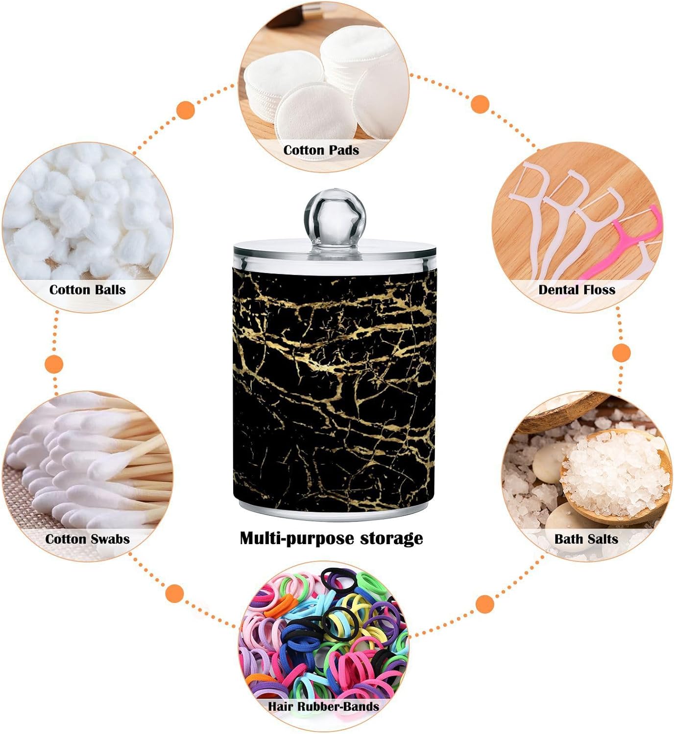 Qtip Holder Dispenser 2 Pack Gold Black Marbling Bathroom Decorative Storage Canister Holder Counter Vanity Organizer for Cotton Ball Swabs Pads Floss
