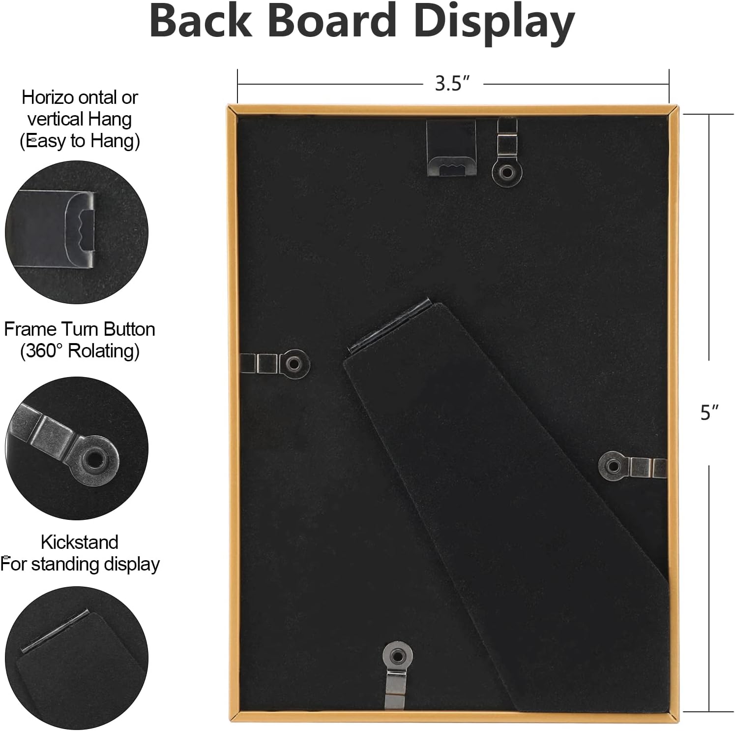 3.5x5 Picture Frame Matte Gold Modern Simple Thin Aluminum Metal Photo Frame with HD Real Glass, Display for Tabletop and Wall Collage. (2 Pack)