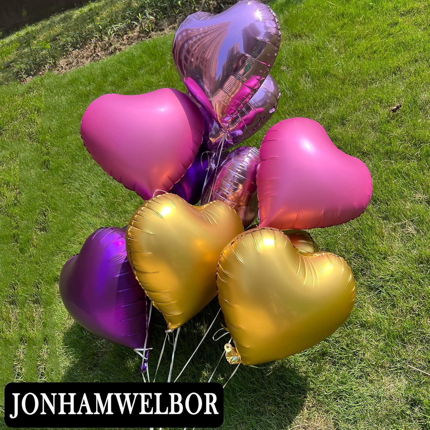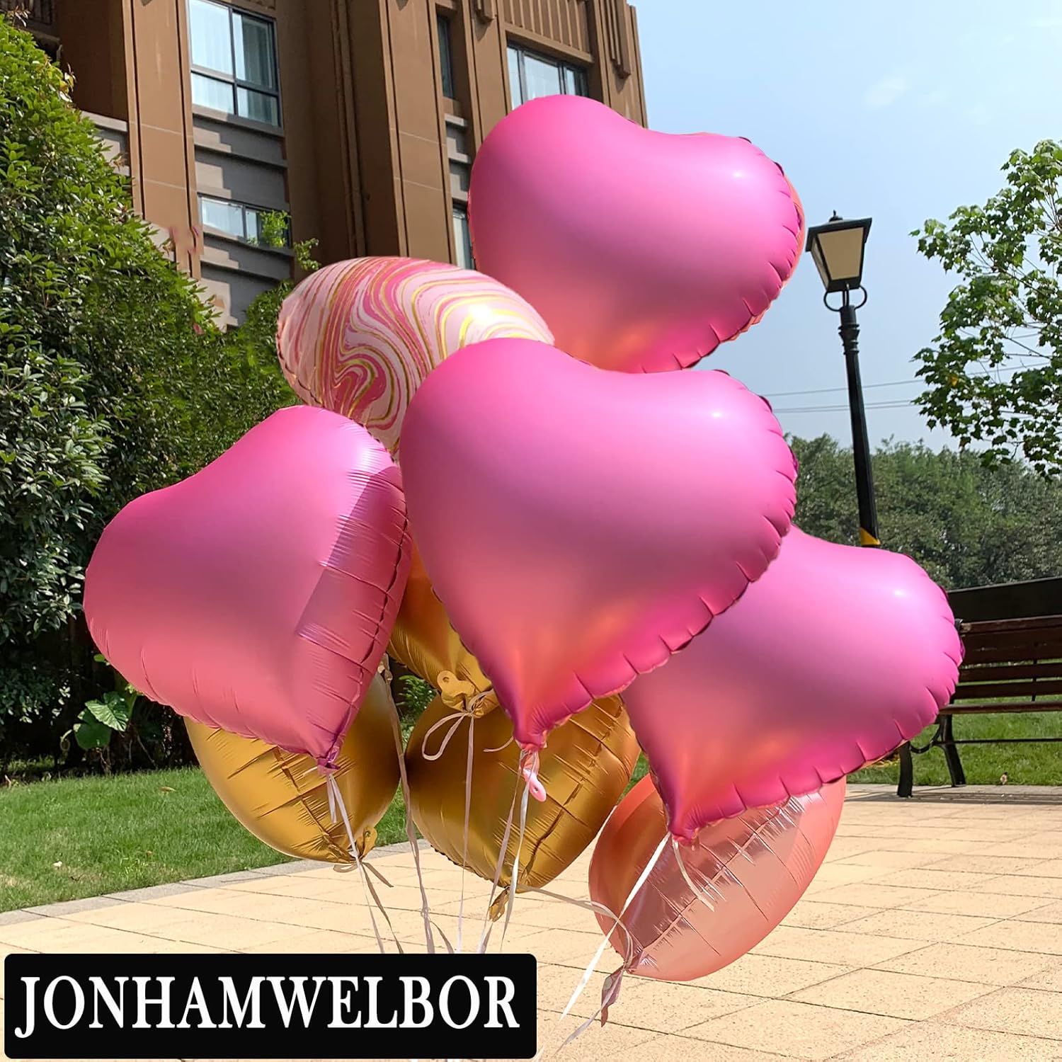 Jonhamwelbor 20Pcs 18 inch Metallic Pink Foil Mylar Heart Shape Balloons Decorations Valentines Birthday Wedding Baby Shower Party (Metallic Pink)