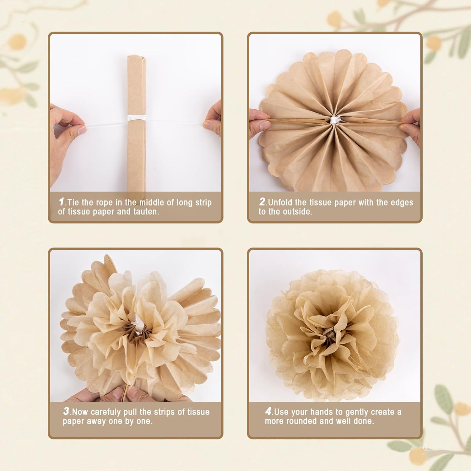 • Boho,Neutral Tones: These Tissue Paper Pom Poms in white, creamy ivory, and brown offer versatile elegance for any Neutral Party Decorations. Perfect as flower party decorations, they can be hung from ceilings, attached to walls, or used as charming centerpieces.