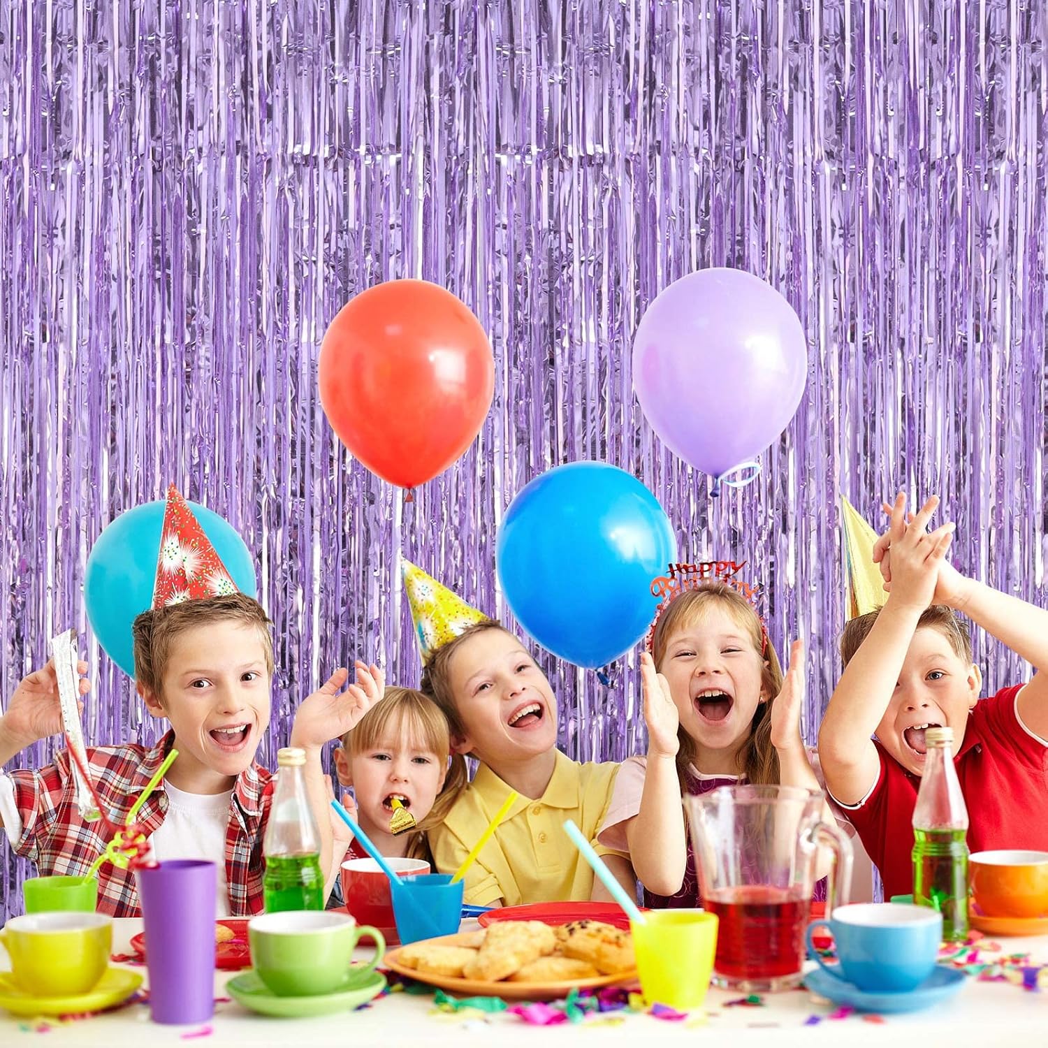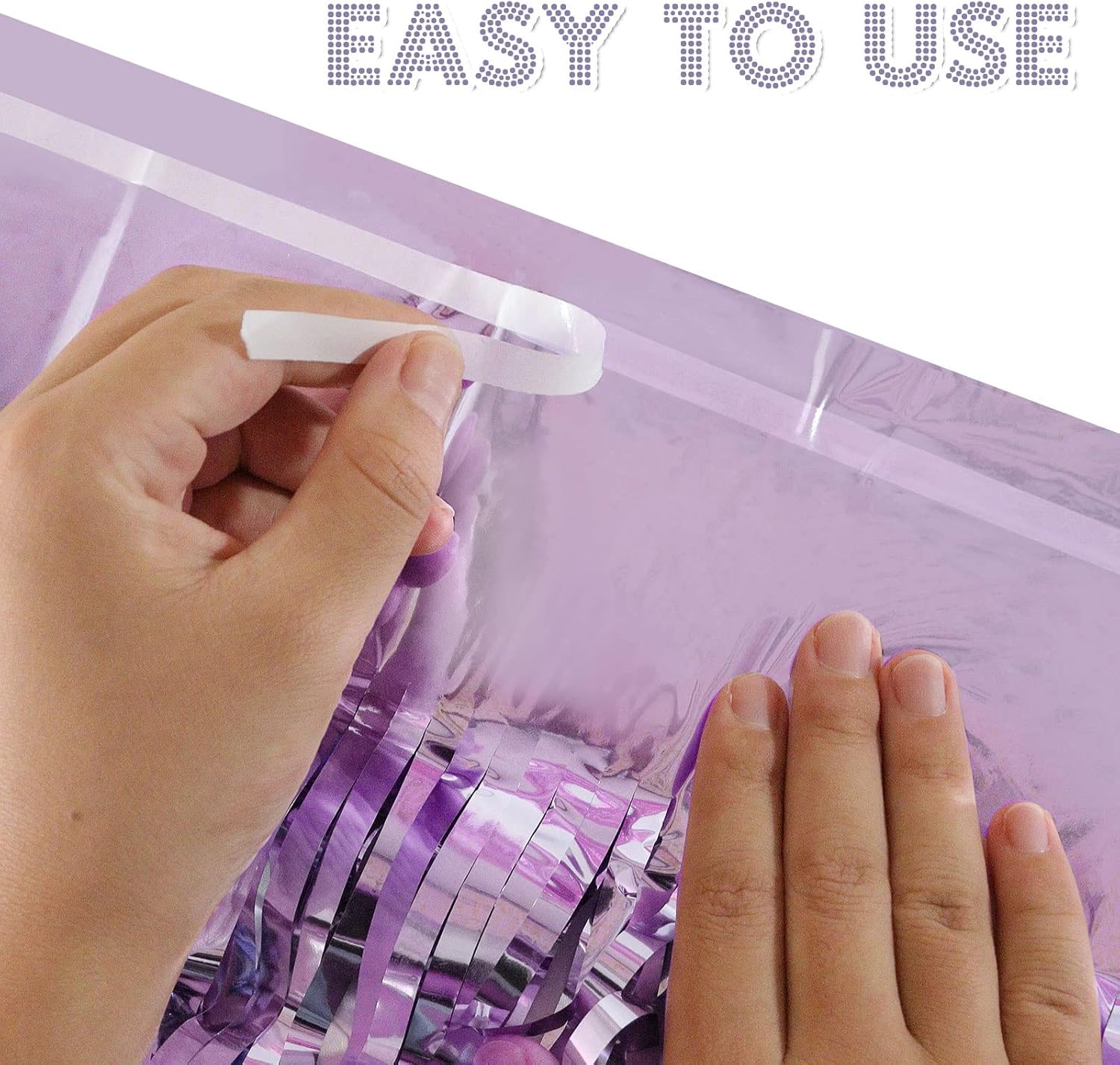 2 Pack Light Purple Fringe Curtains Foil Shiny Fringe Backdrop Tinsel Door Streamers Foil Curtains for Birthday Wedding Engagement Bridal Shower Celebration Party Decorations Large