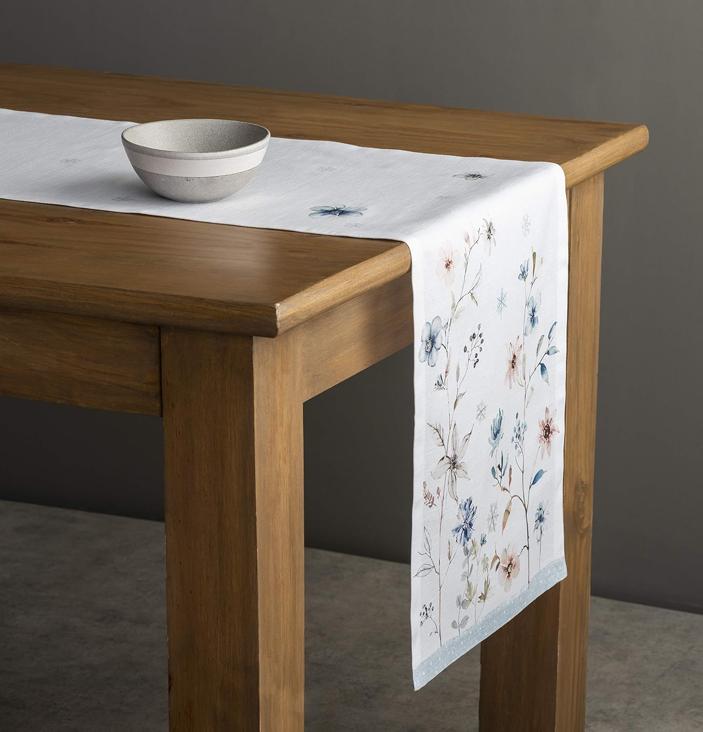 Maison d' Hermine Table Runner 100% Cotton Single Layer Table Runners 60 inches Long Decorative for Home Kitchen Dining Party Baby Shower Wedding Bridal Shower (Ice Florals, 14.50" x 60")