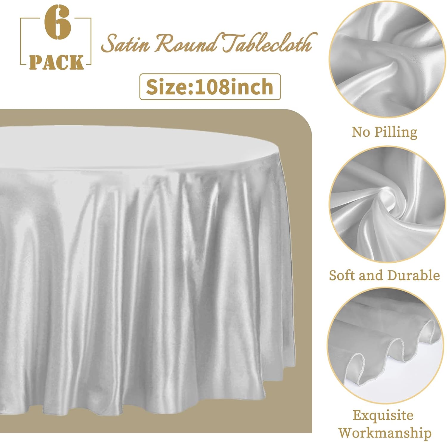 fani 6 Pack 108 Inch Sliver Round Tablecloth - Premium Silky Satin Tablecloth Overlay Smooth Fabric Table Cover Linens, Table Decoration for Wedding Party Banquet Events Restaurant Kitchen Dining