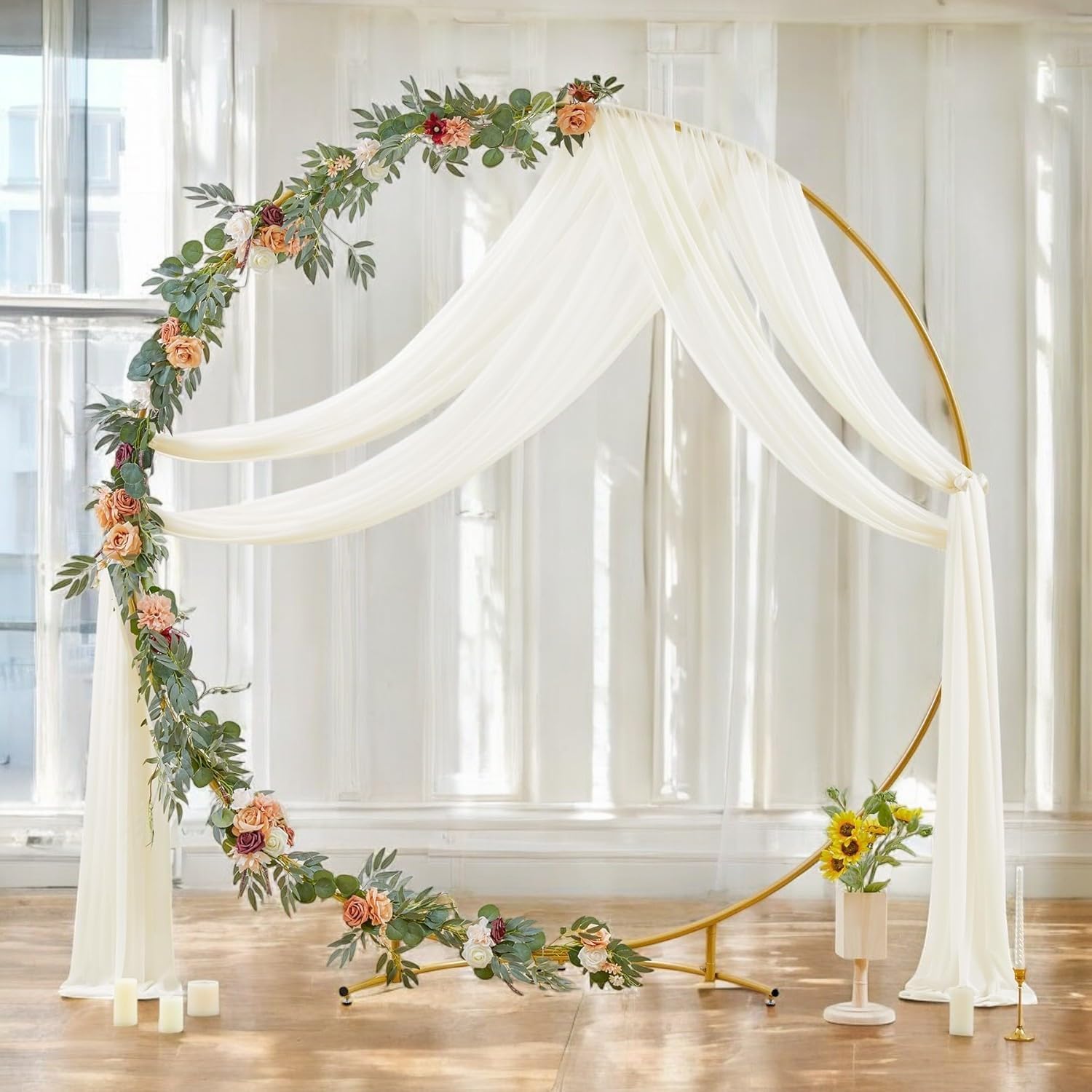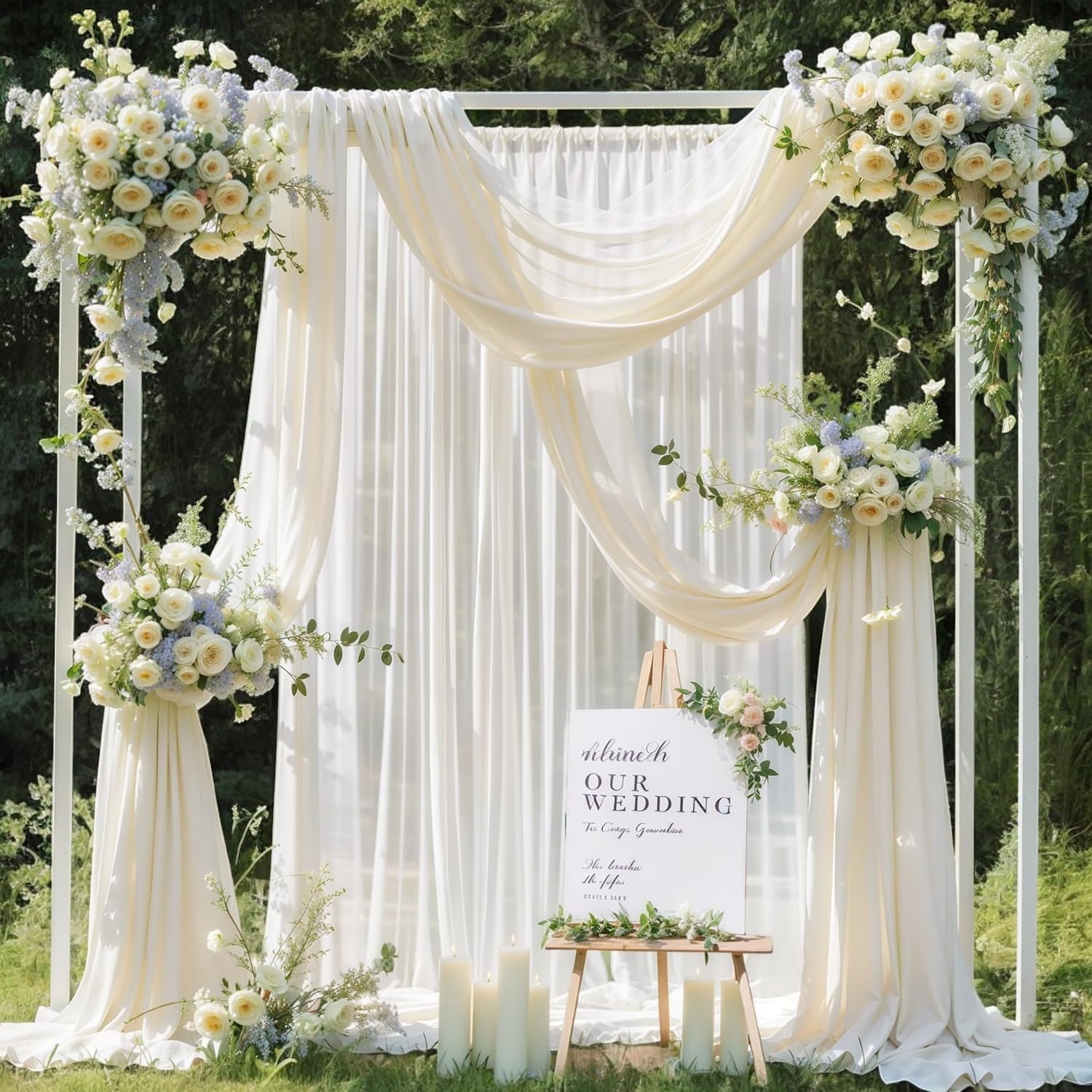 • MULTI-SCENES USES : The drapes made the entire wedding come together, perfect for your indoor outdoor baby shower parties, bridal shower, baby showers, holiday parties,wedding, family gatherings, dessert tables, candy tables.White wedding arch drape fabric can also be used on a canopy, chuppah, arbor or altar.This wedding arches for ceremony is perfect for creating beautiful pleats or letting it float off the floor, adding a very delicate, soft, beautiful touch to your stage at any event.