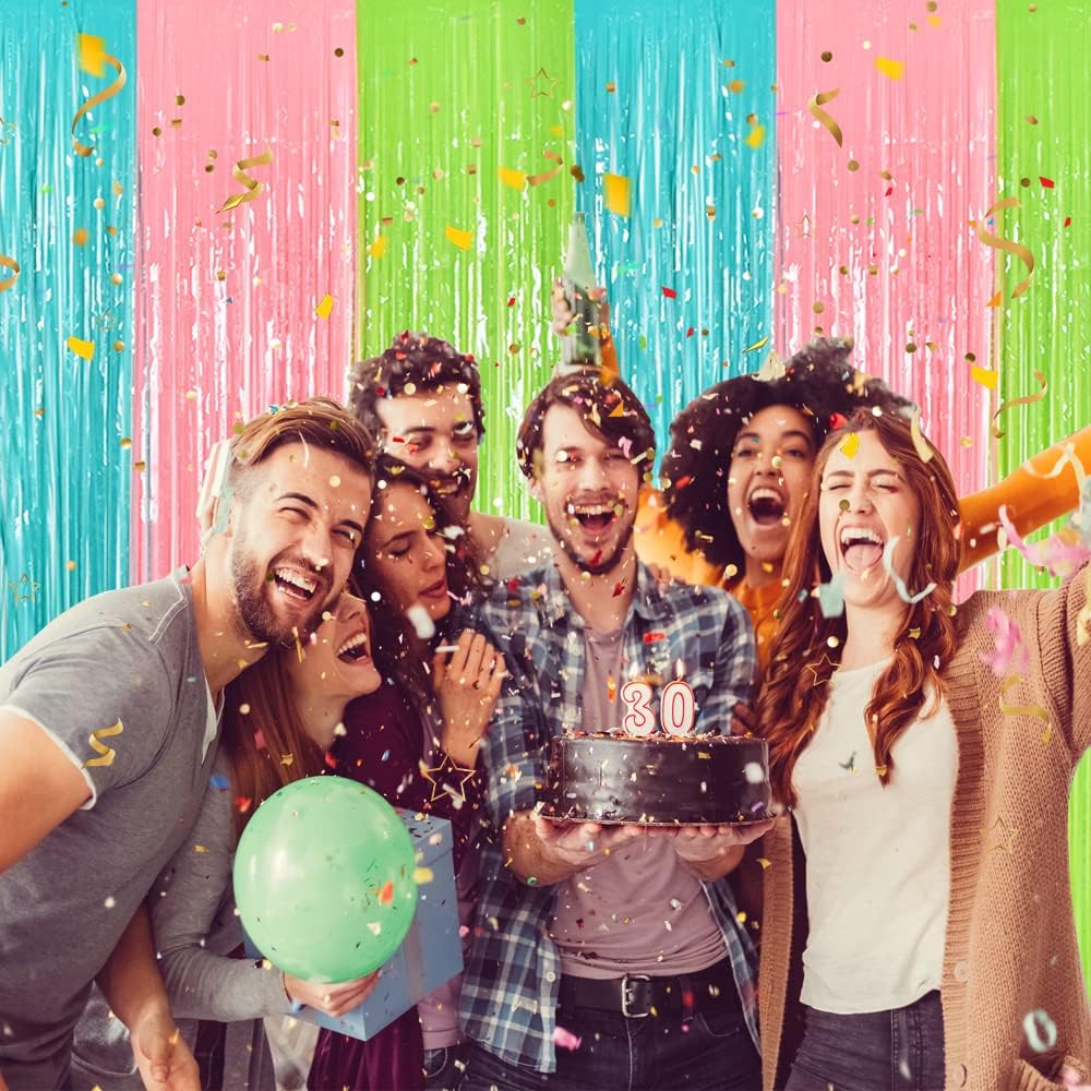 • 【Color】Each pack of the foil fringe curtain is combined with 3 colors: blue, pink and green. They are shiny and brightly under the light (not included), good decorations for your amazing parties.