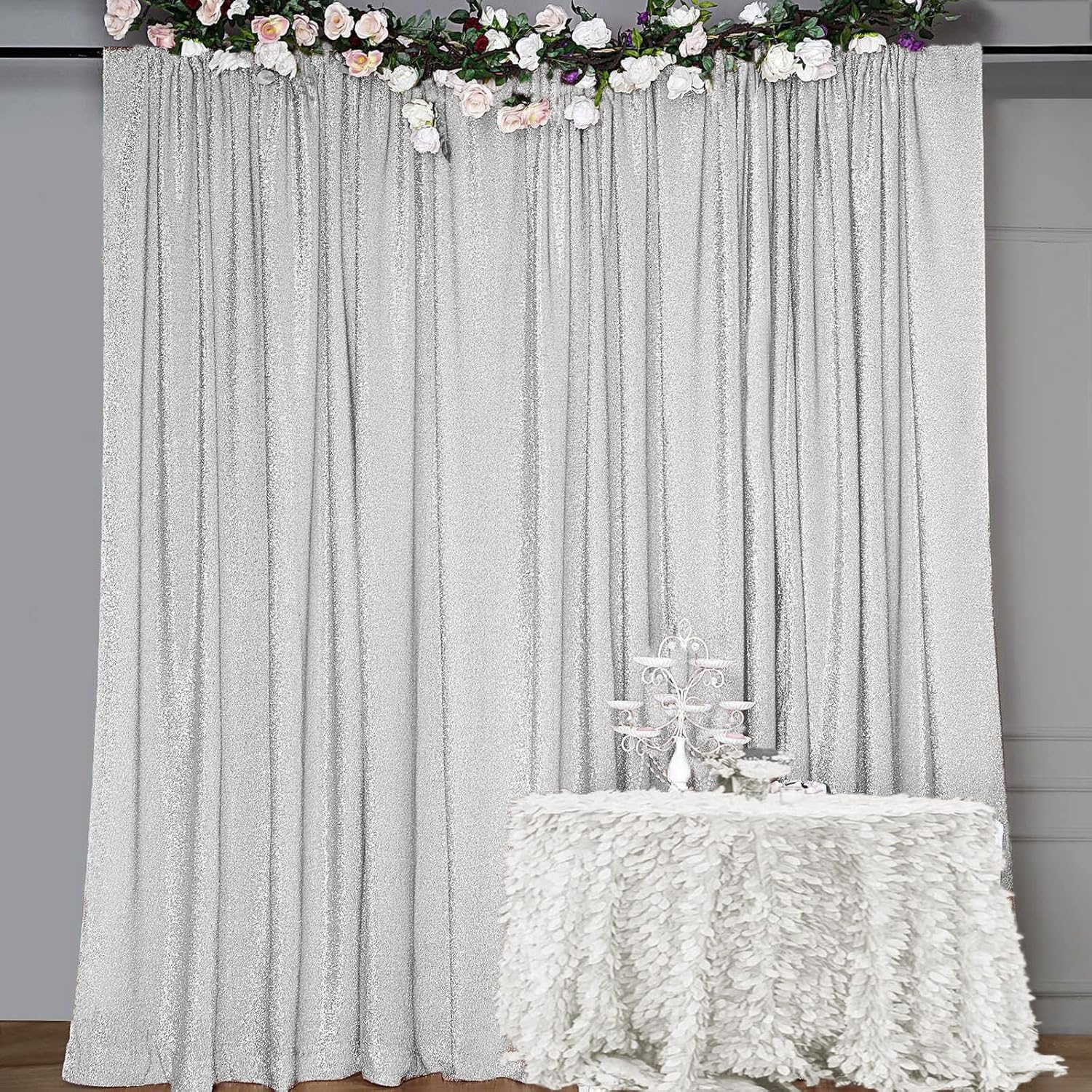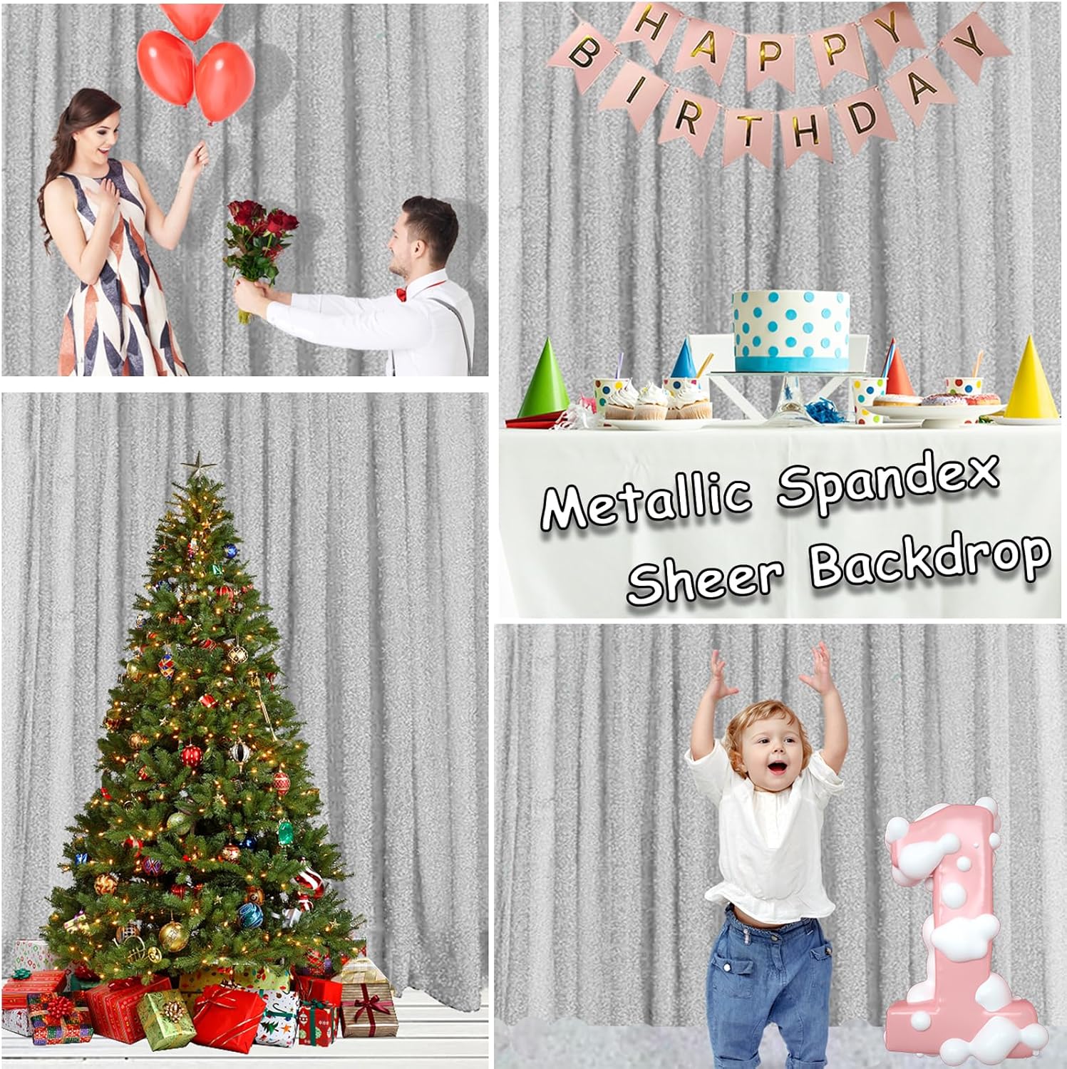 10FT x10FT Silver Metallic Spandex Backdrop, 1 Panel Glitter Sheer Photography Background, Stretchy Spandex Fabric for Wedding, Party, Baby Shower, Photo Booth Decor