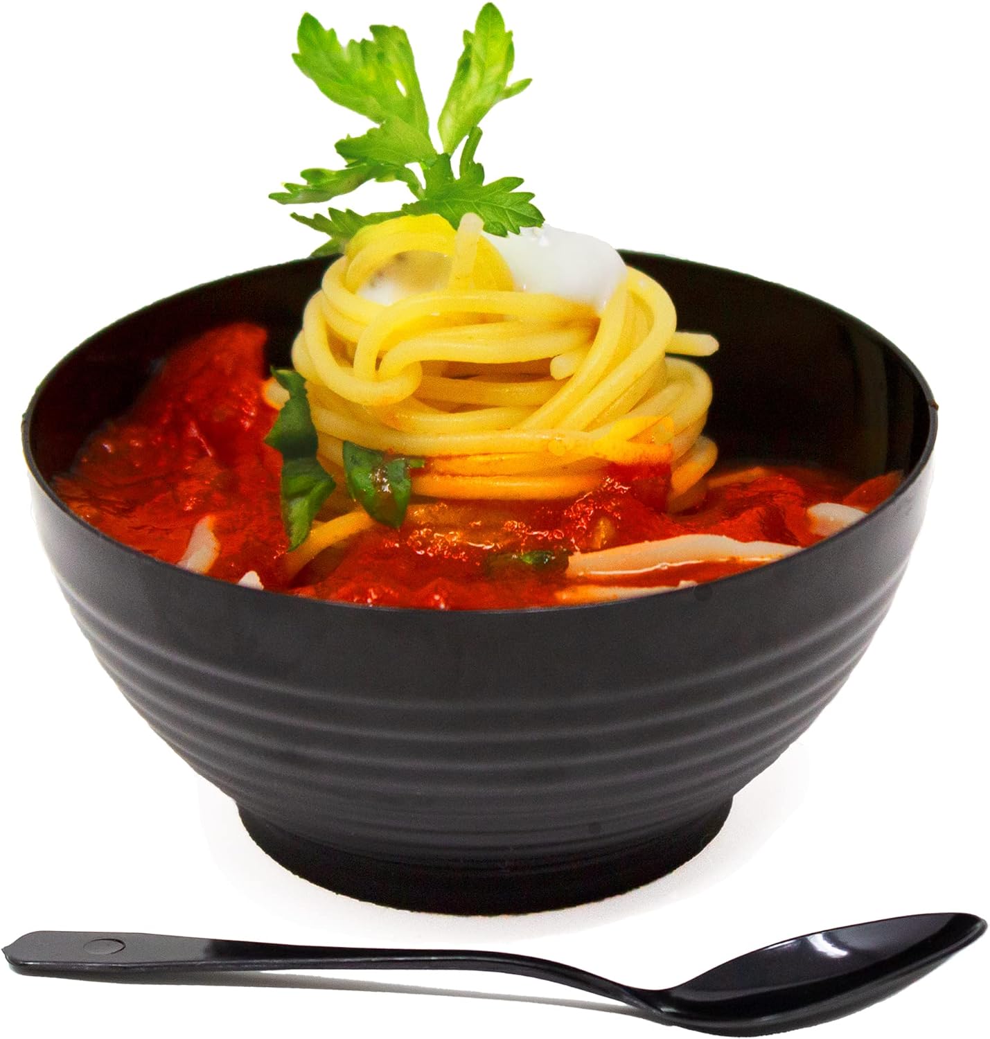 50 Pack 3 oz. Asian-Style Black Mini Plastic Bowl With Spoons For Appetizer Bowls and Disposable Dessert Bowls Professional-Grade Recyclable Disposable Mini Dessert Cup for Appetizers CMJJ