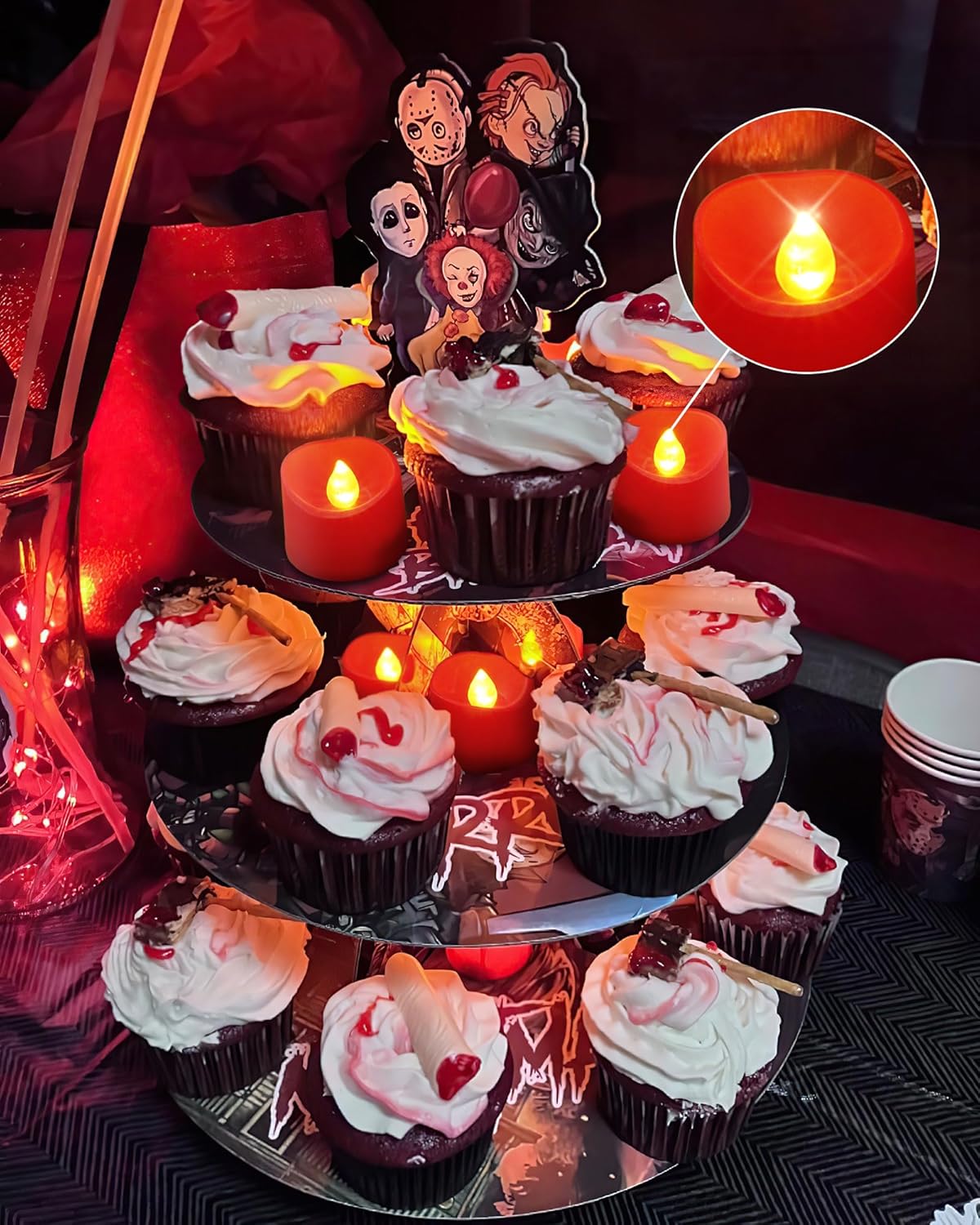 Homemory Red Tea Lights Candles Battery Operated, 200+Hour Flameless Flickering Fake Electric LED Colored Tealights Candles for Party, Wedding, Anniversary, Halloween, Christmas, 12-Pack