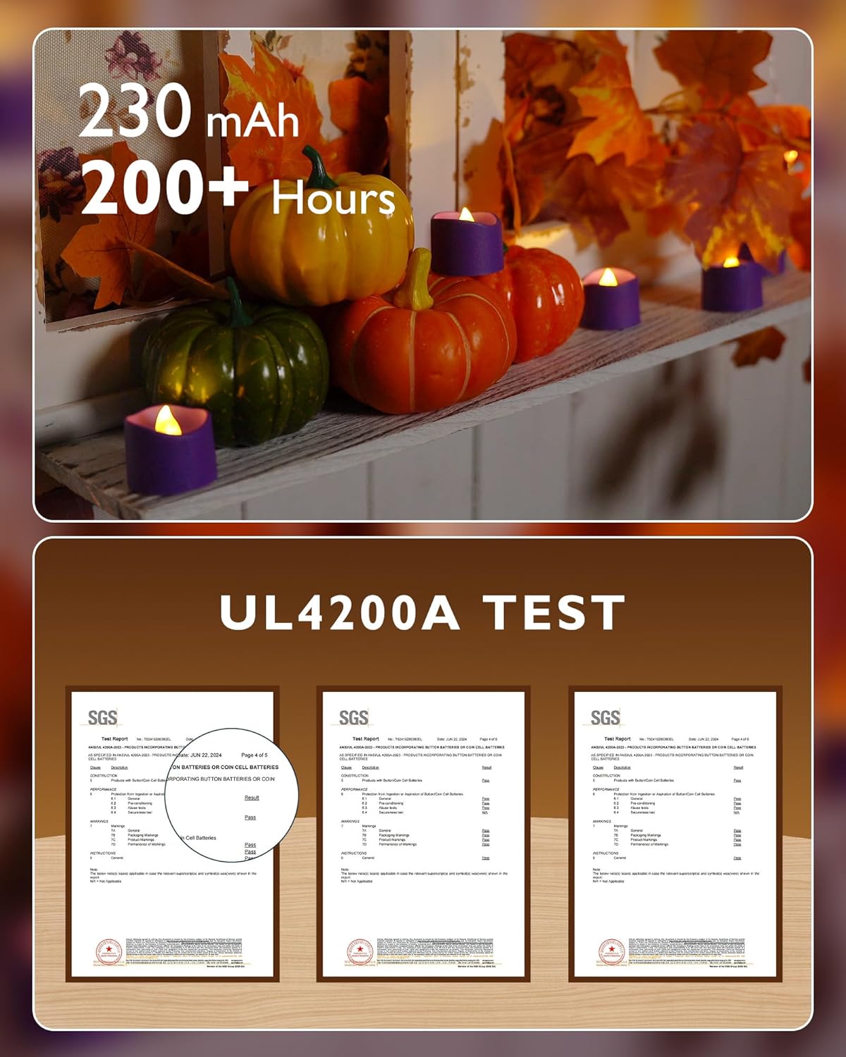 • RELIABLE & SECURE: Homemory LED tea lights are tested rigorously, ensuring their reliability. With (UN38.8) internationally certified batteries and healthy polypropylene materials, plus a secure battery cap design, we care about your safety