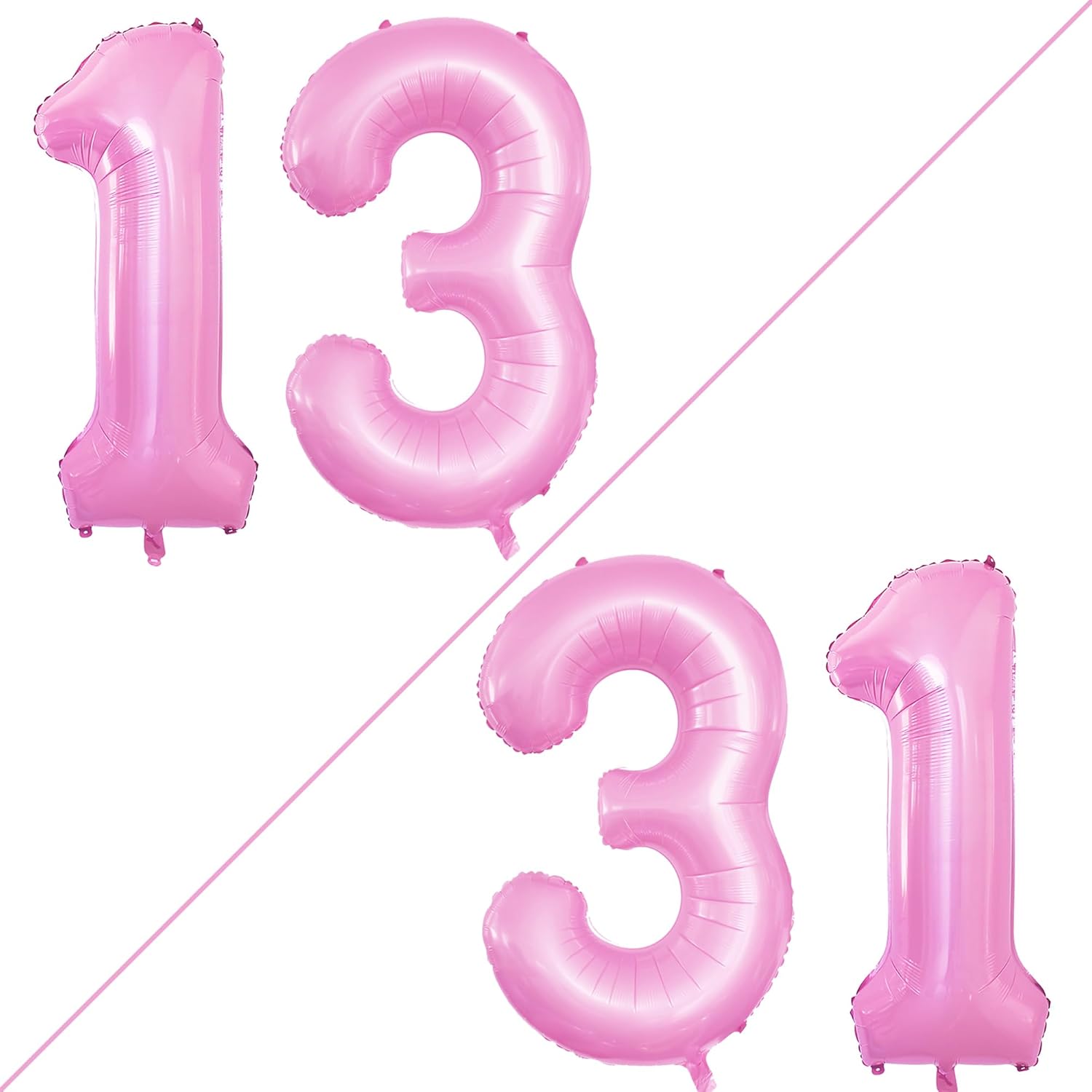GOER Number 13 Balloons for 13th Birthday Sweet 13 Party Decorations,42 Inch Jumbo Foil Helium 31 Balloons for 31st Birthday Party Decoration (Light Pink)