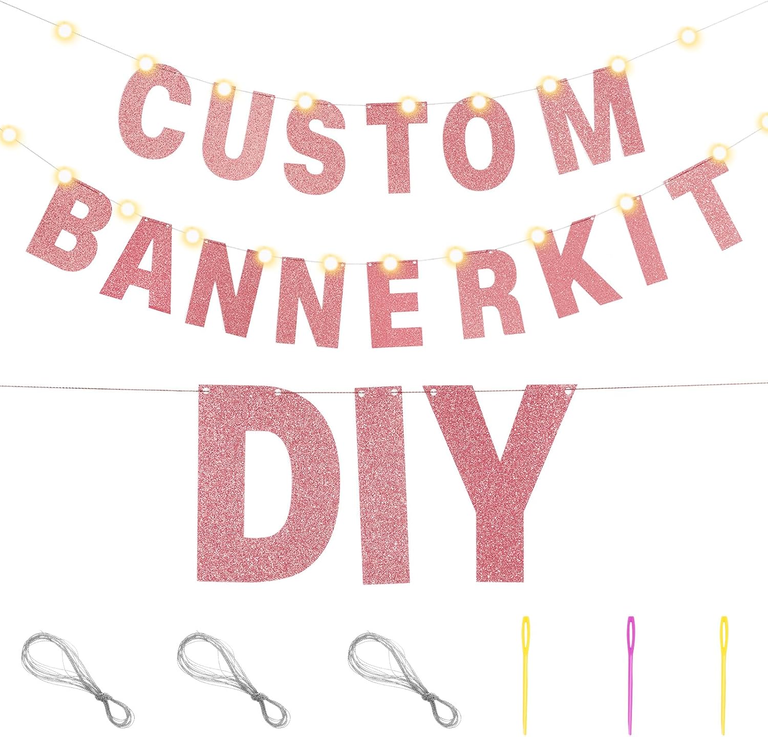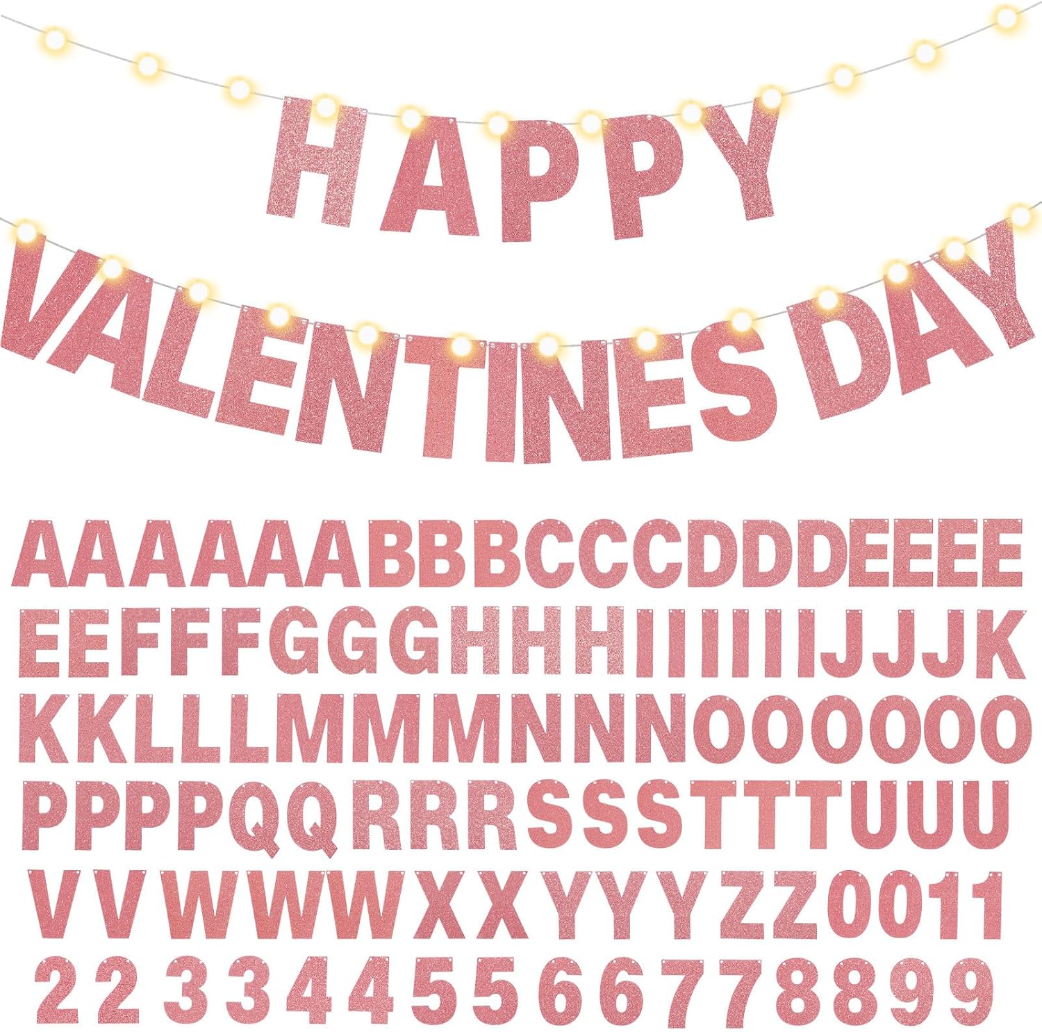TaoBary 112 Pcs DIY Letter Custom Banner Glitter Customizable Banner Kit Including 107 Letters and Numbers 3 Rope for Valentine Birthday Party(Rose Gold)