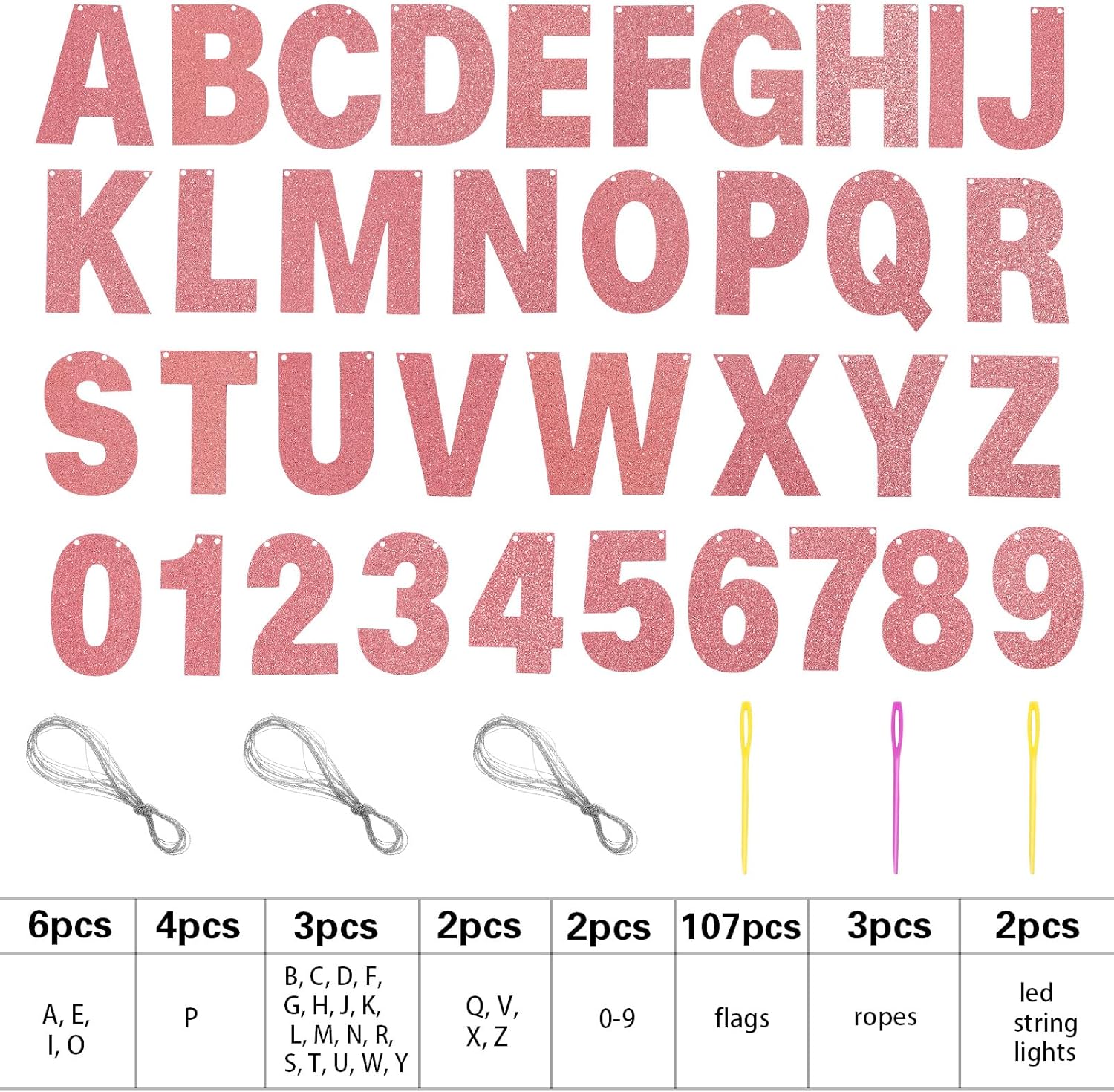 • DIY Banner Kit with Letters: you will get 107 pieces of letters and numbers, including 6 'A, E, I, O' letters, 4 'P' letters, 3 'B, C, D, G, H, J, K, L, letter M, N, R, S, T, U, letter W, Y, F shape' letters, 2 'Q, V, X, Z' letters and 2 '0-9' numbers, come with 3 ropes; Nice combination meet your various parties decorative demands